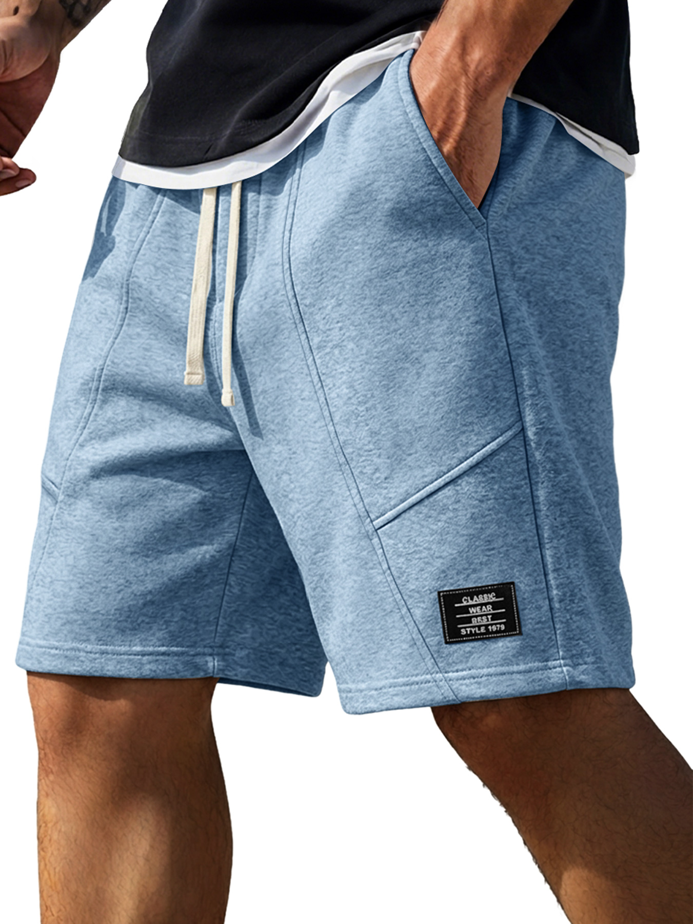 Men's Minimalist Deconstructed Design Embroidered Logo Casual Shorts