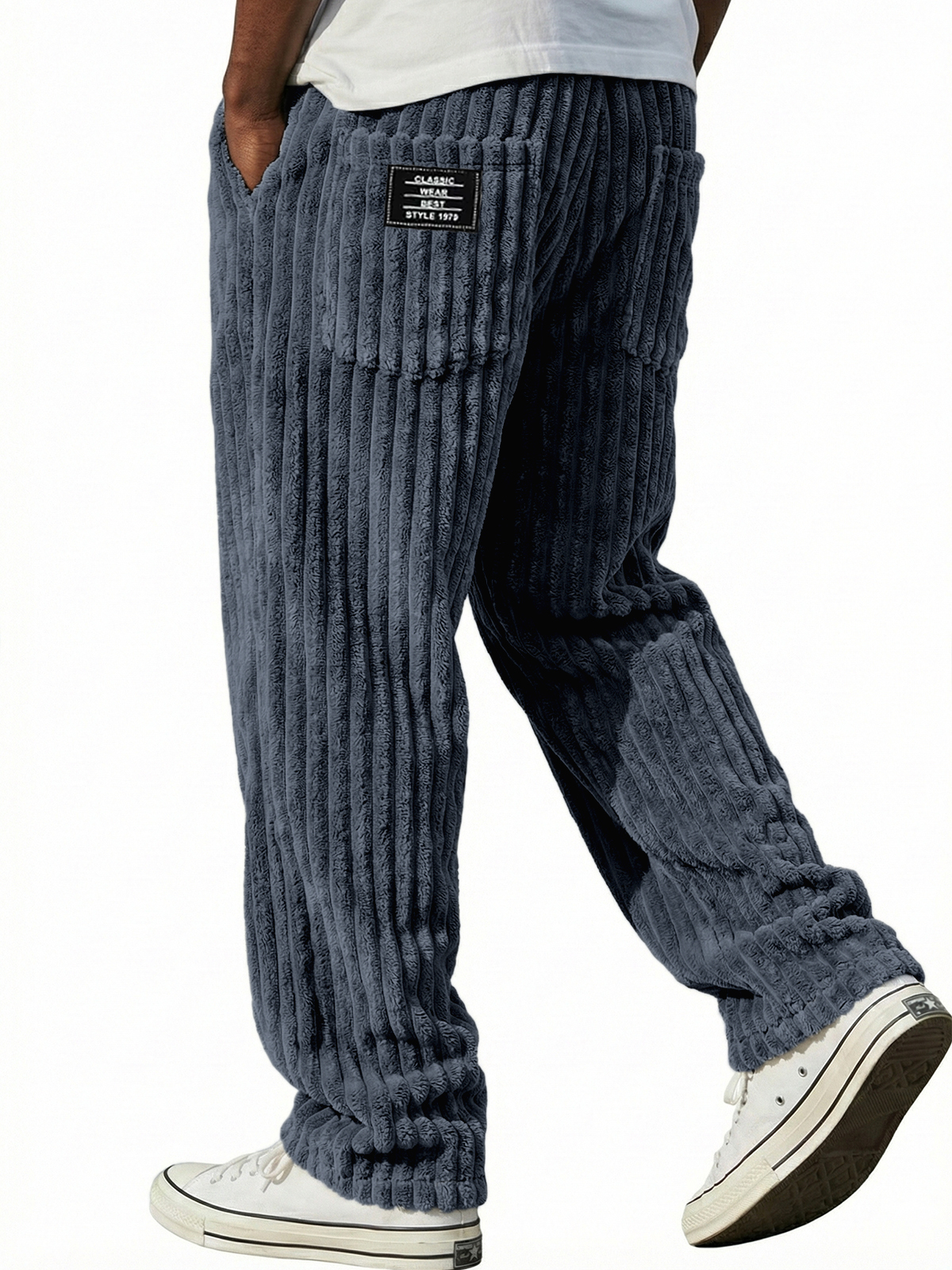 Men's Stylish Corduroy Pants with Embroidered Labels and Patch Pockets