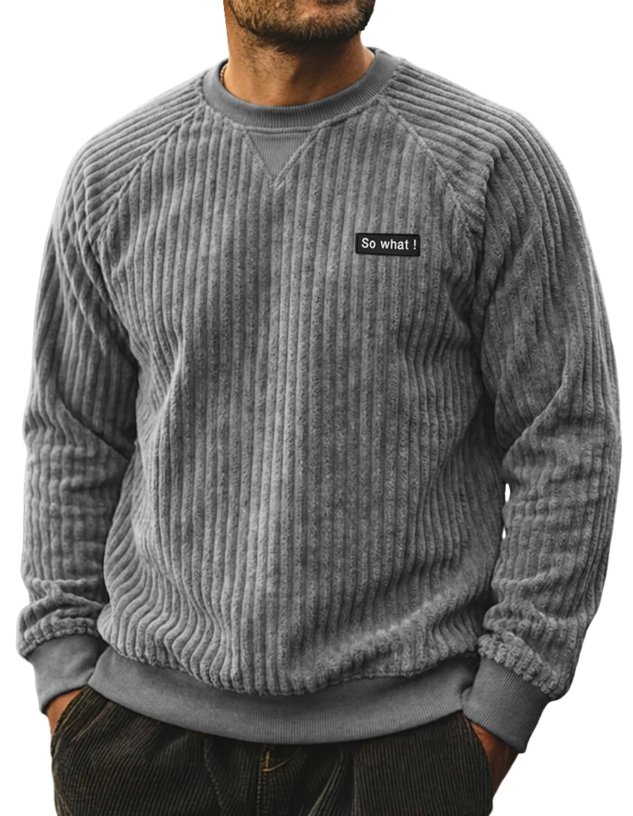 Men's Round-neck Corduroy Sweatshirt With Vertical Stripe Texture And Vintage Style