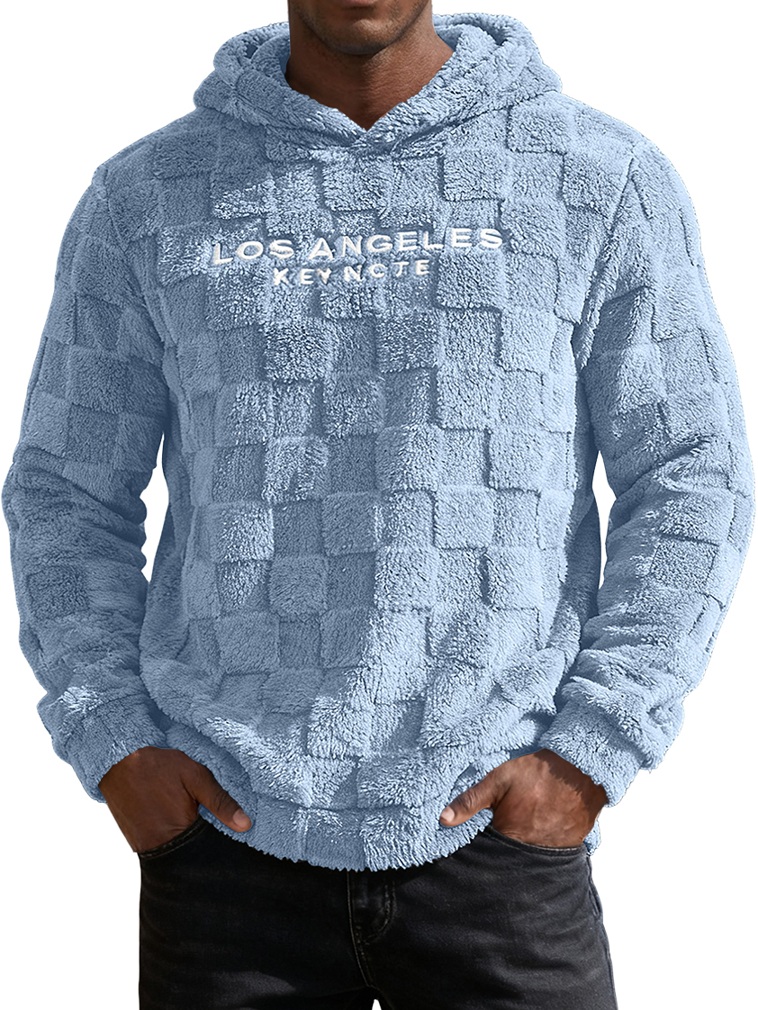Men's Waffle Knit Fleece Letter Embroidery Hooded Sweatshirt