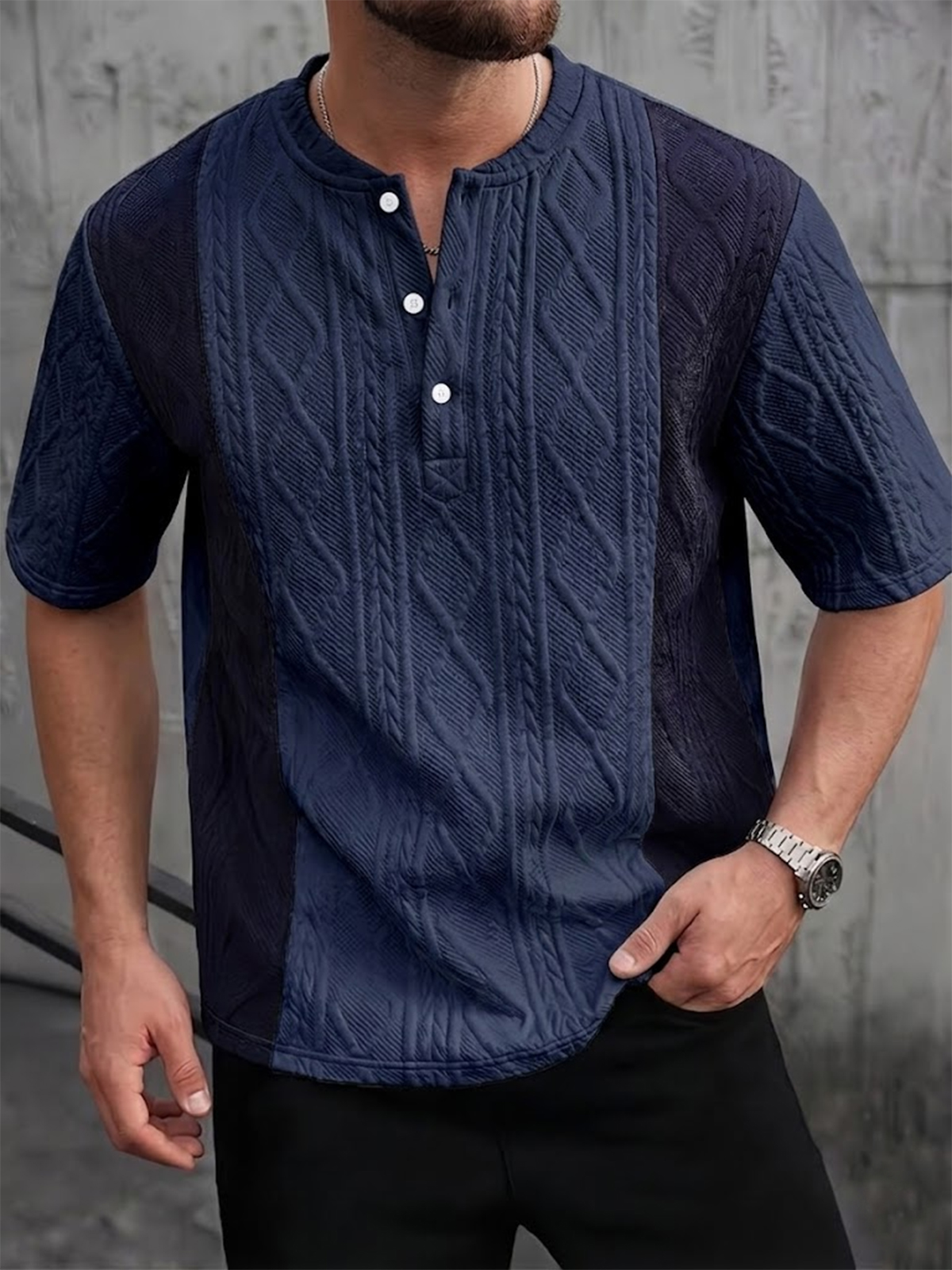 Men's Color-blocked Jacquard Textured Pullover Henley