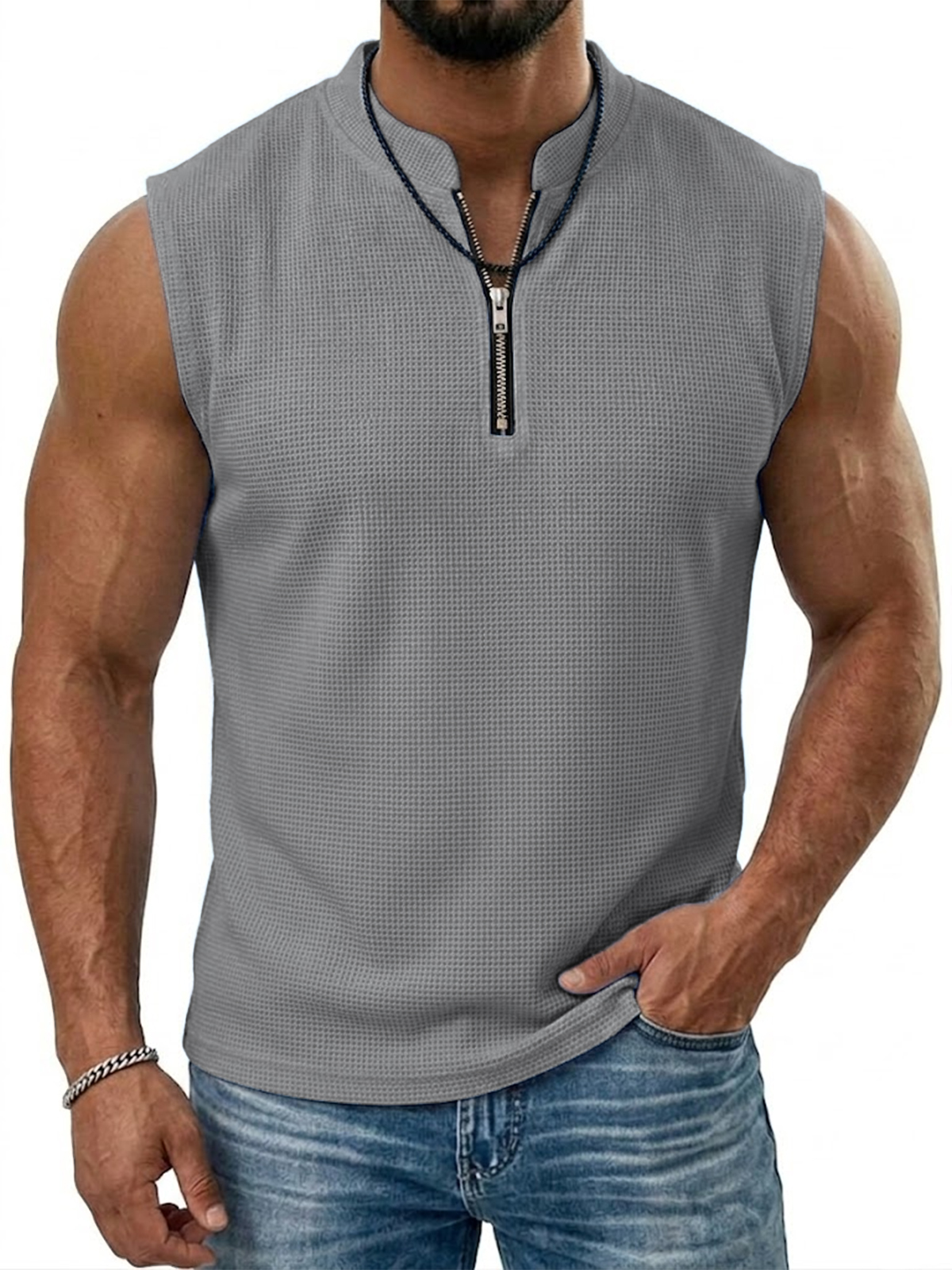 Men's Sleeveless Solid Color Textured Pullover Vest