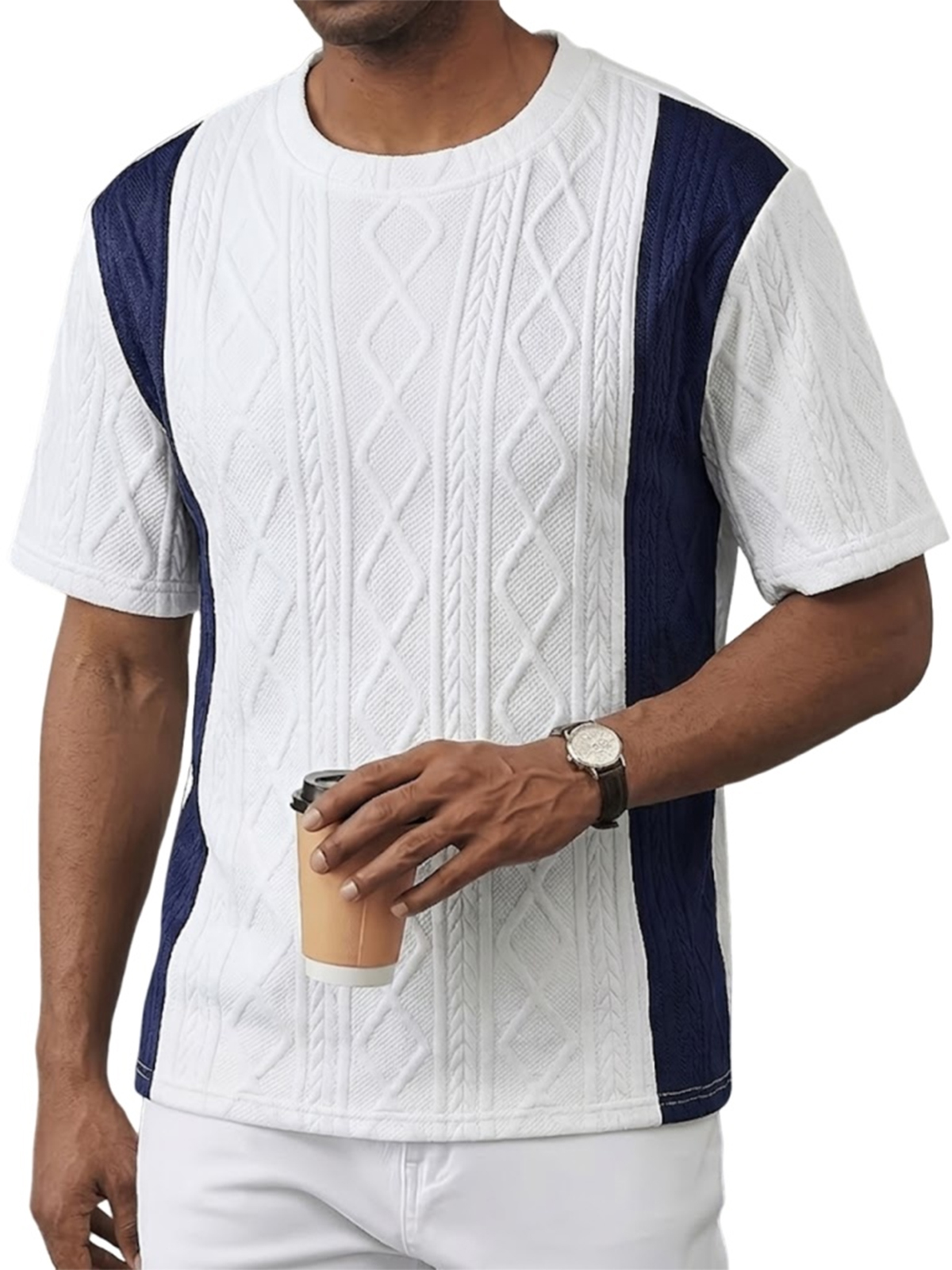 Men's Color Block Jacquard Textured Pullover Crew Neck T-Shirt
