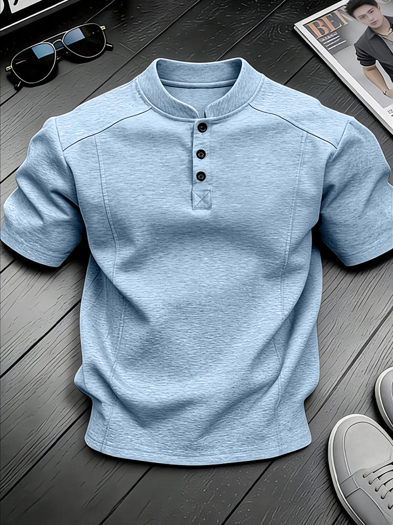 Men's Stand-up Collar Button-down Design Casual Short-sleeved Henley Shirt