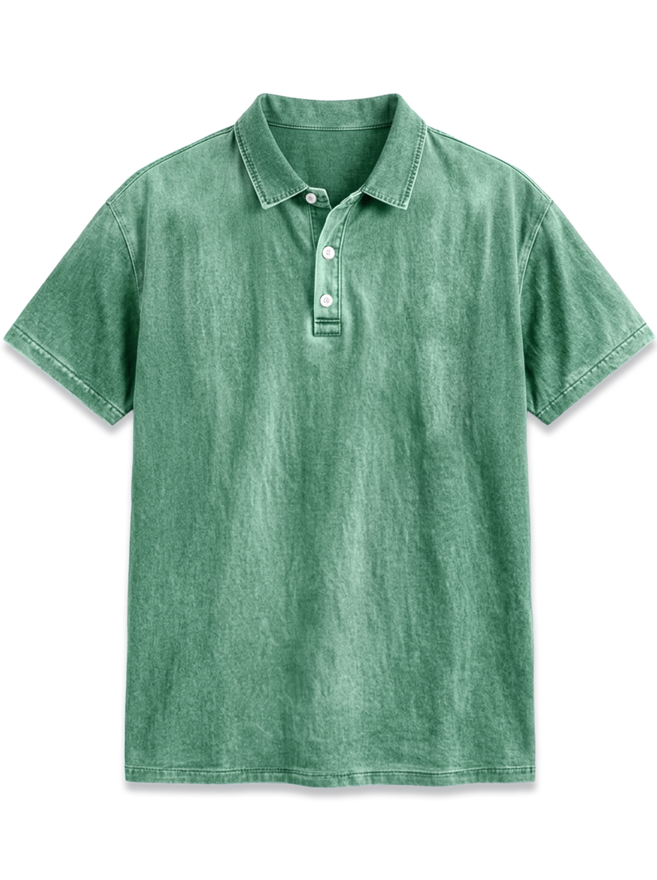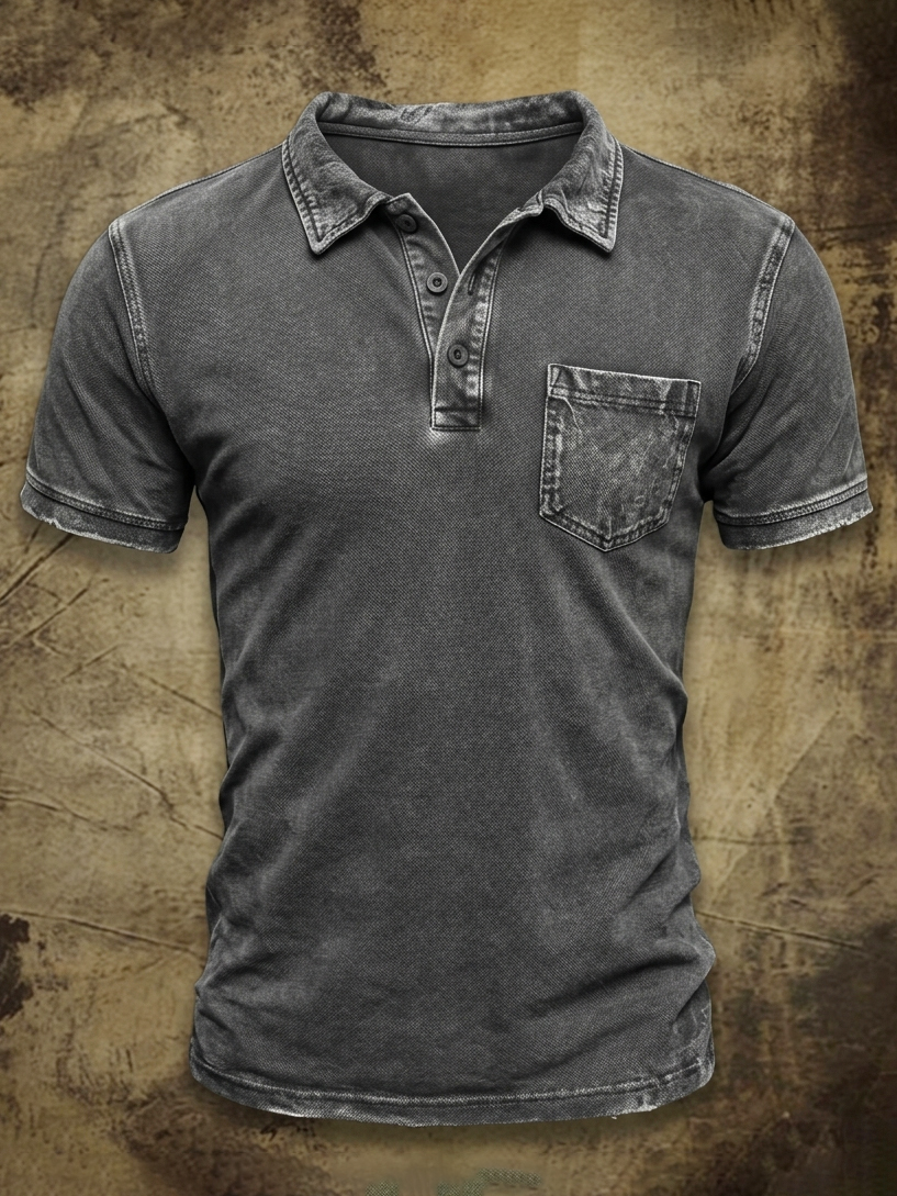 Men's Vintage Washed & Distressed Cotton Pocket Polo Shirt