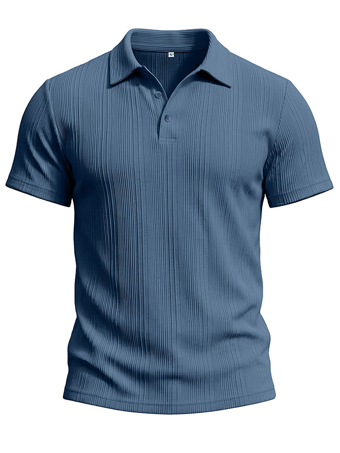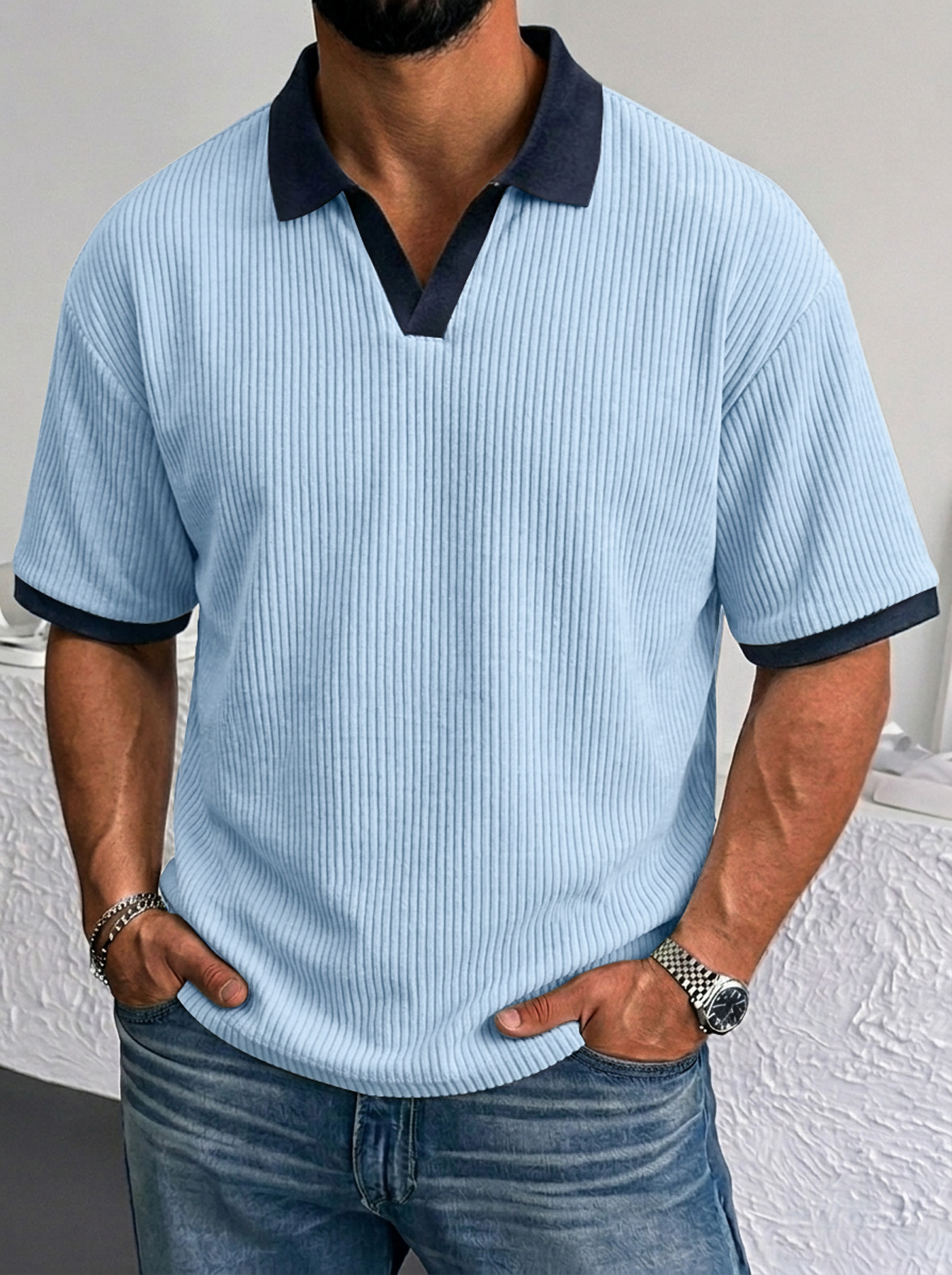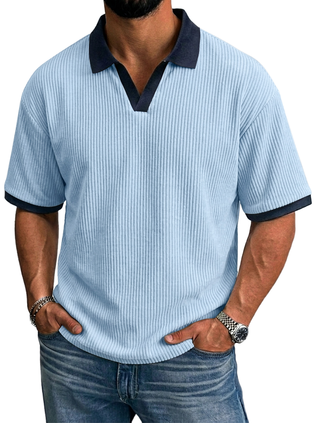 Men's Simple Ribbed Color Block Casual Short-Sleeve Polo Shirt