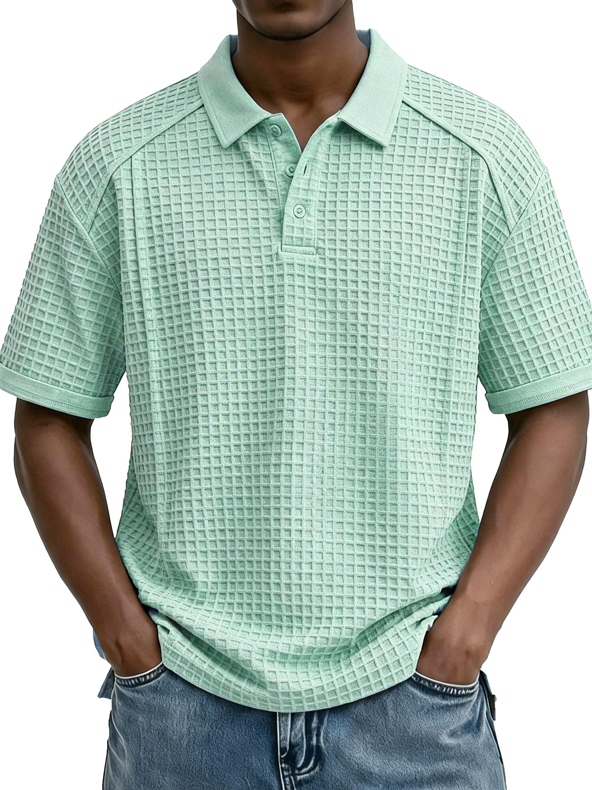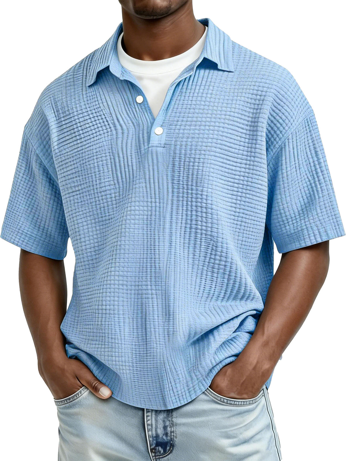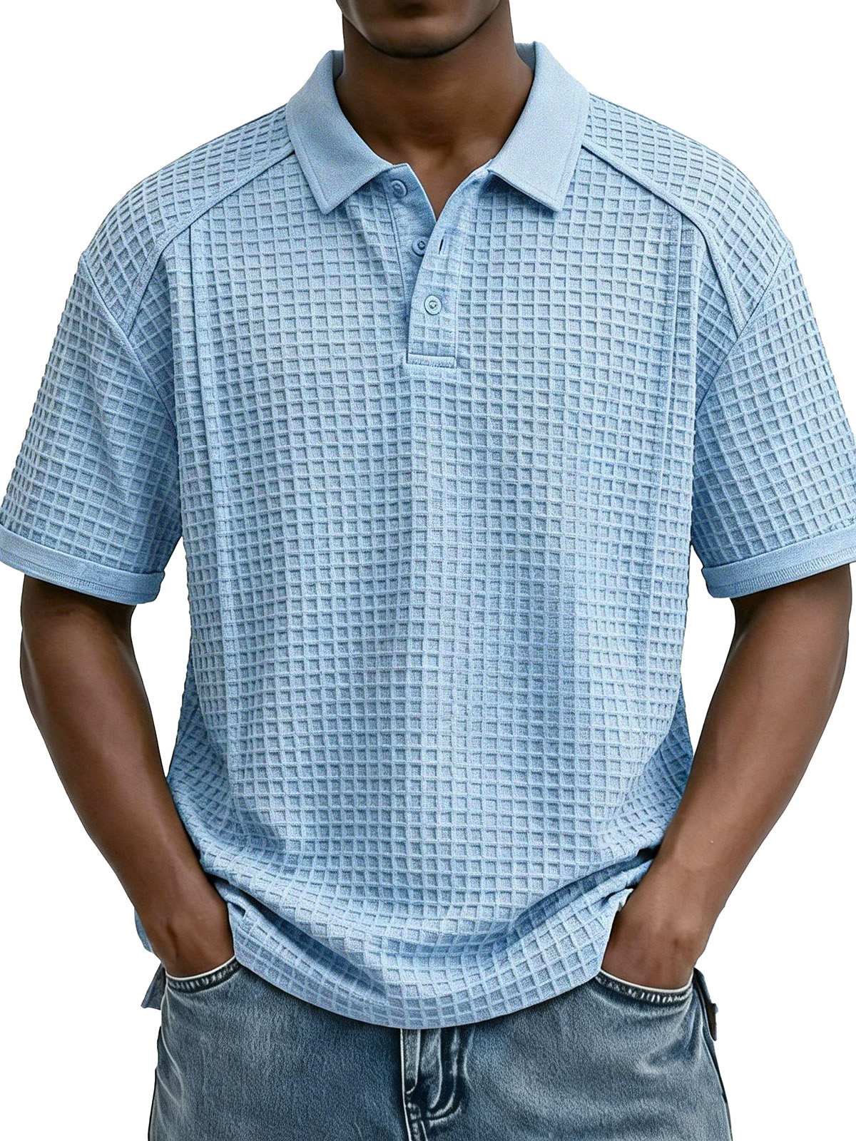 Men's Fashion Retro Waffle Fabric Collared Short-Sleeve Polo Shirt
