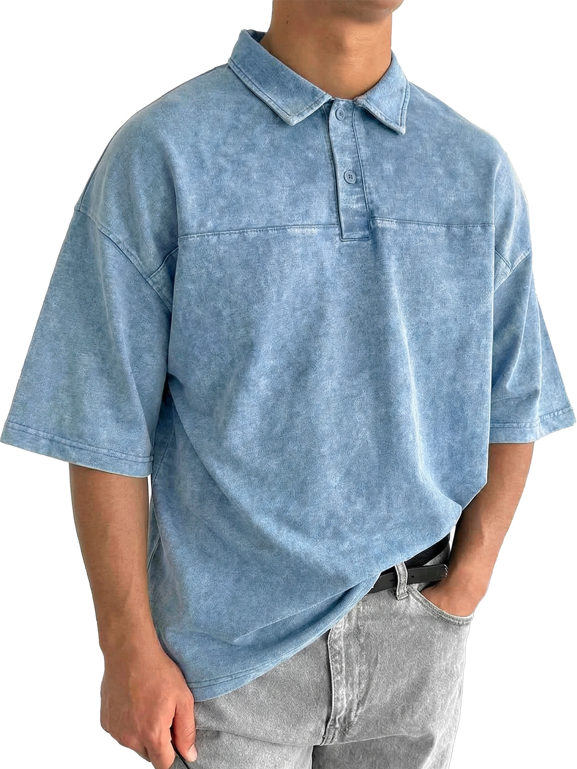 Men's Fashionable Textured Lapel Loose-fitting Short-sleeved Polo Shirt