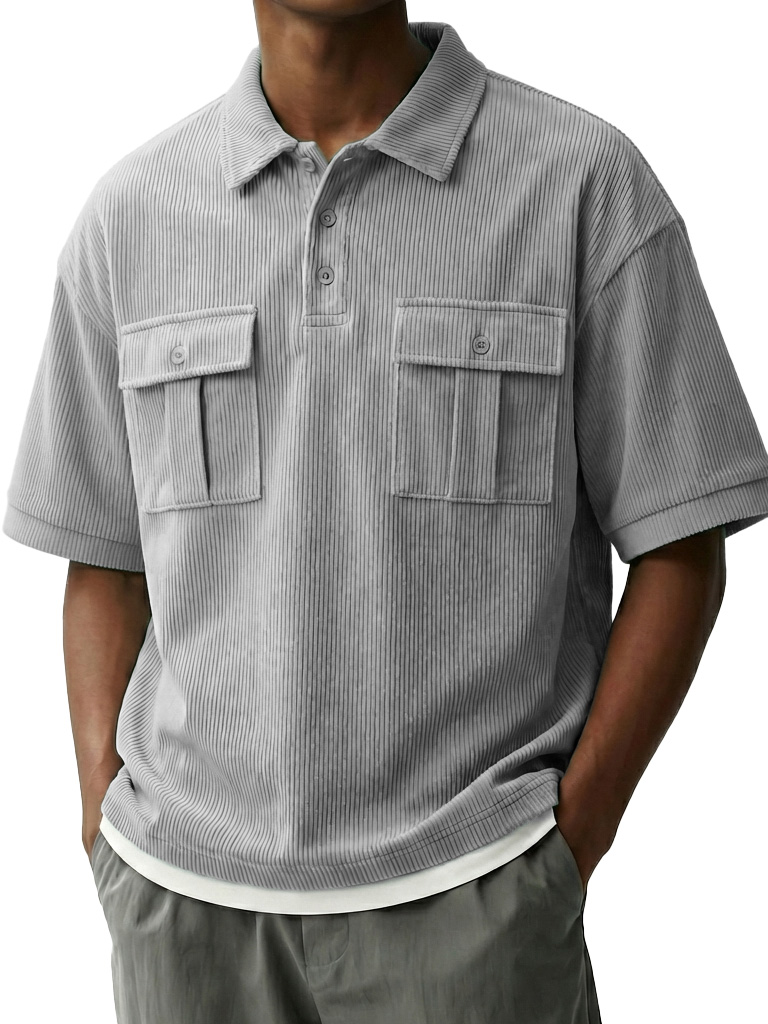 Men's Fashionable Retro Workwear Pocket Short-sleeved Polo Shirt with Lapel