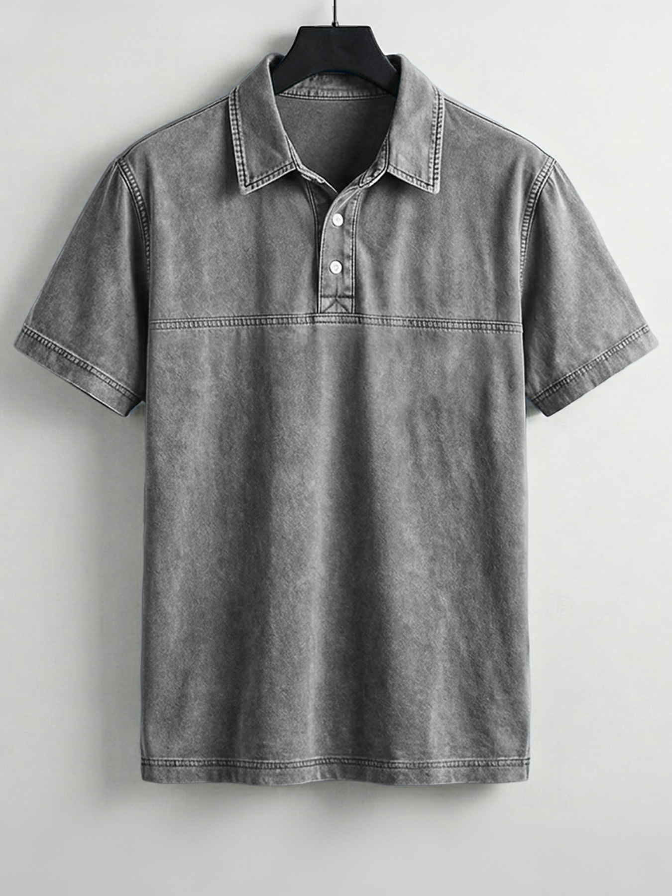 Men's Casual Retro Collar Button-Down Short-Sleeve Polo Shirt