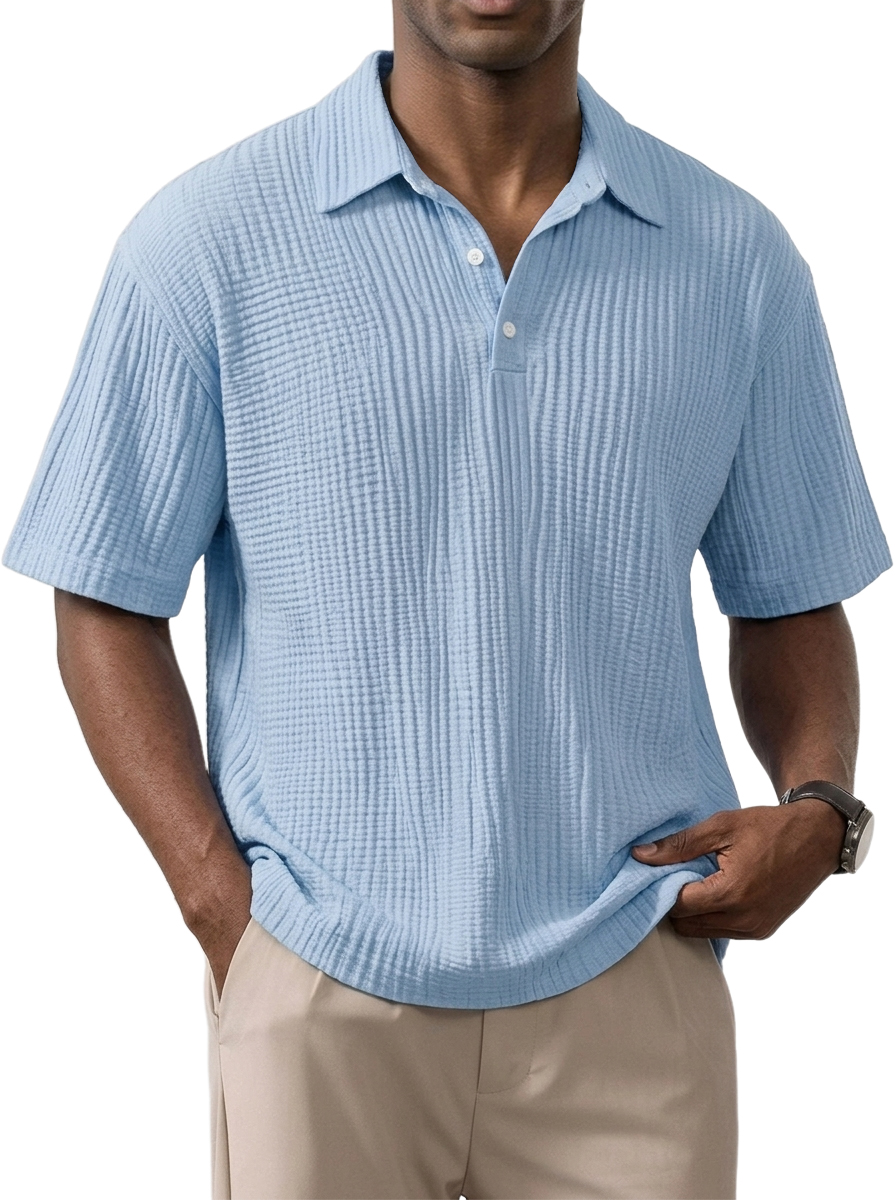 Men's Simple Everyday Loose Fit Textured Short Sleeve Polo Shirt