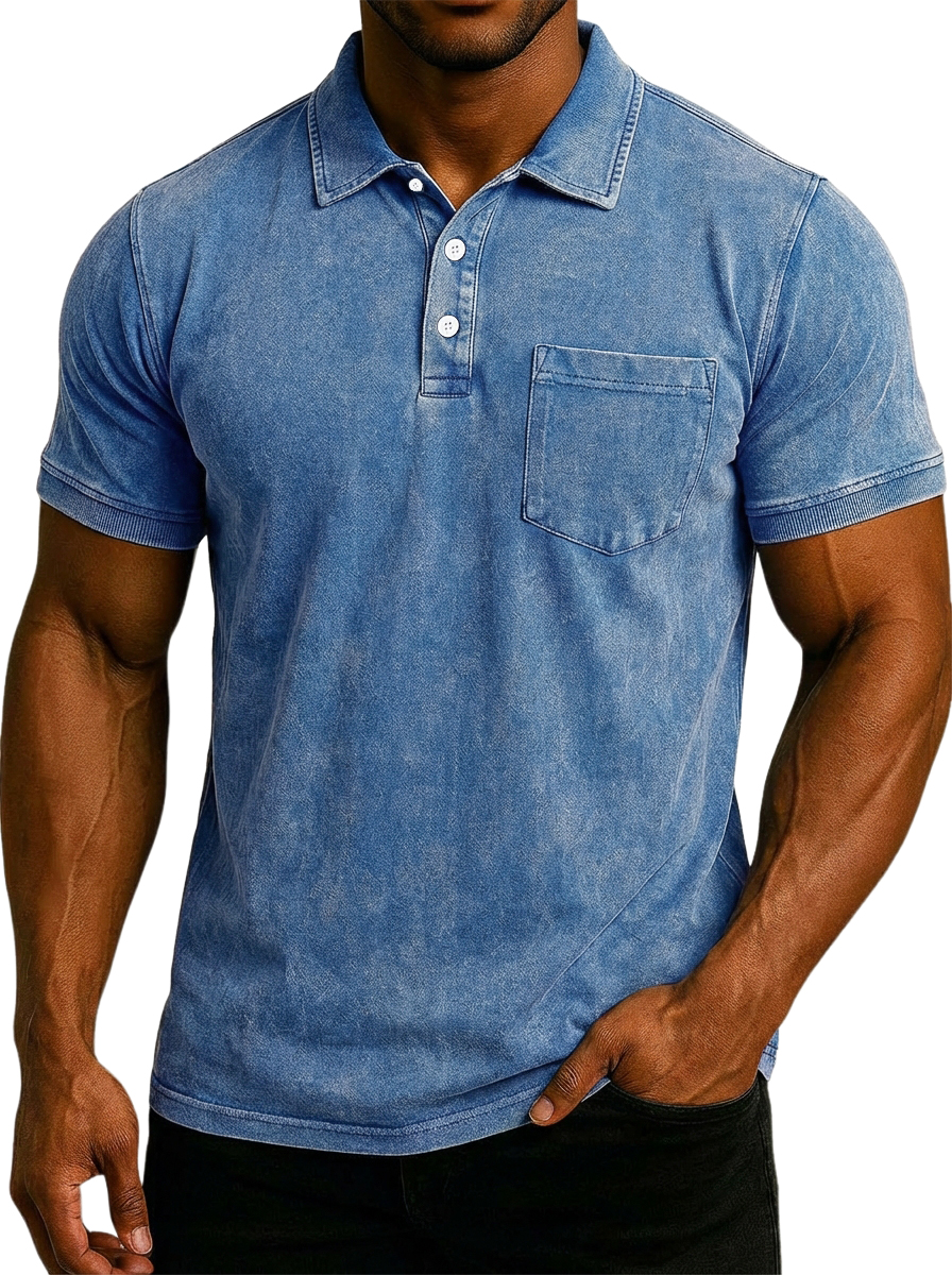 Men's Retro Washed Distressed Pocket Short-Sleeve Polo Shirt