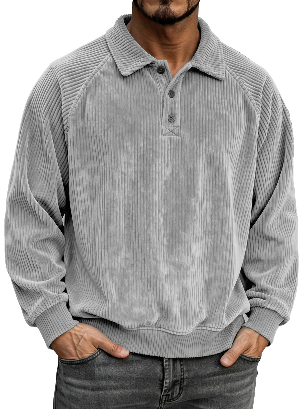 Men's Simple Solid Color Corduroy Long-Sleeve Polo Shirt