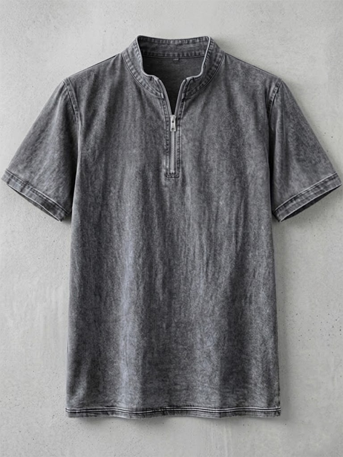 Men's Retro Solid Color Half-Zip Pullover T-Shirt