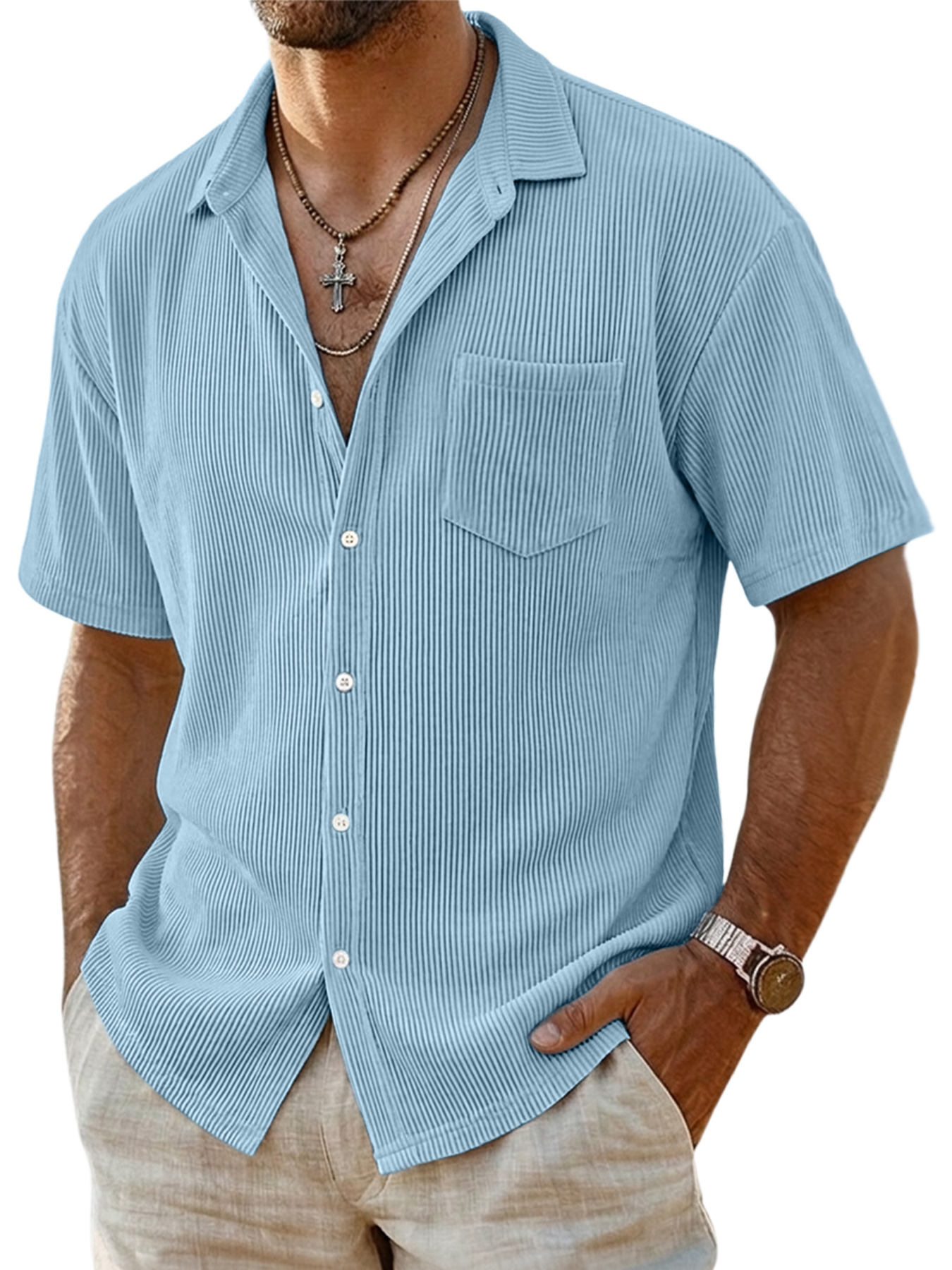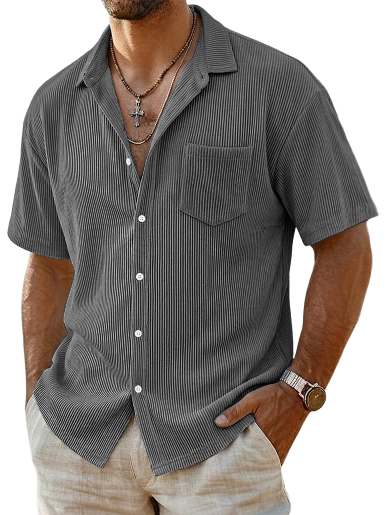 Men's Casual Ribbed Pocket Short-sleeved Shirt