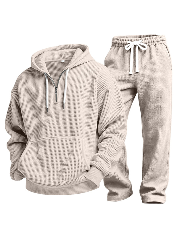 Casual Solid Color Versatile Waffle-knit Sweatshirt And Trousers Two-piece Set