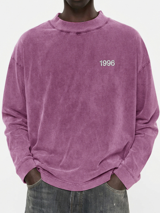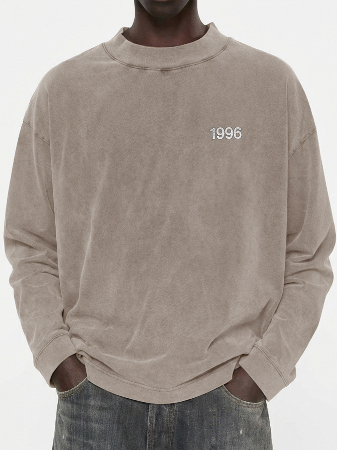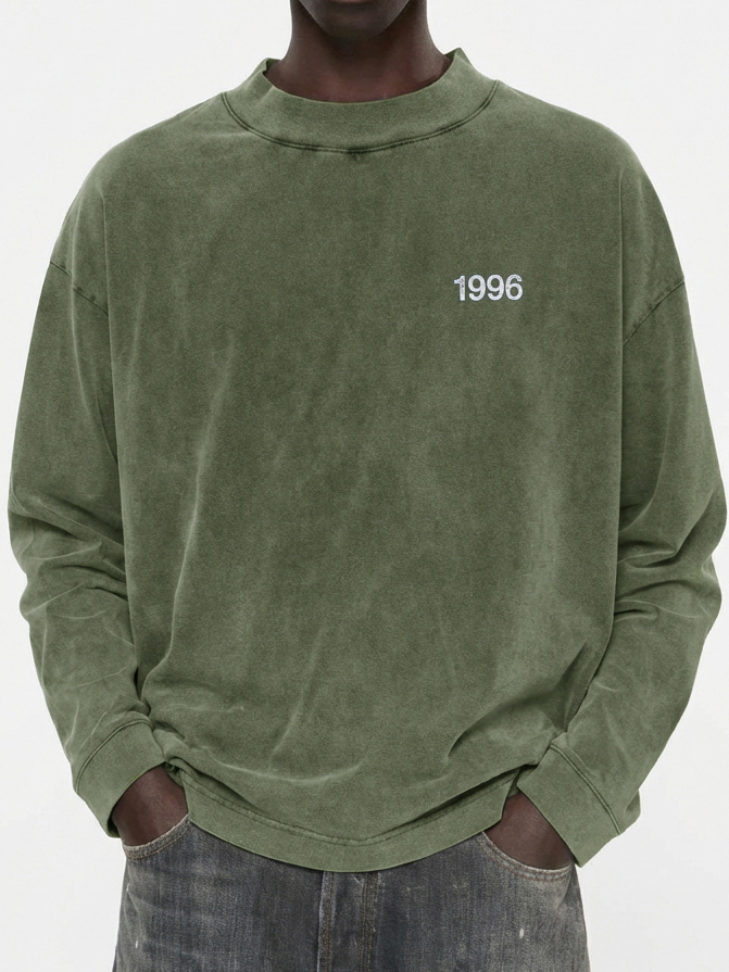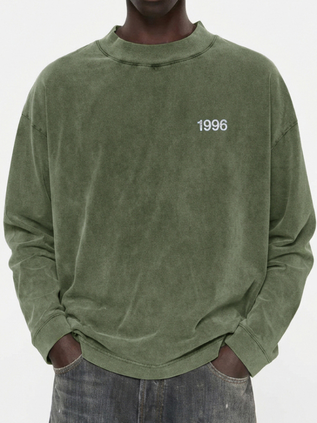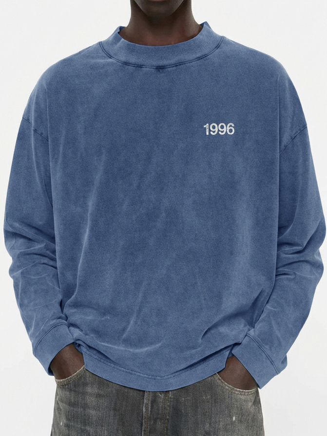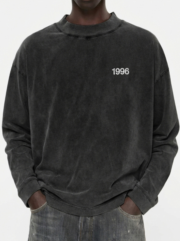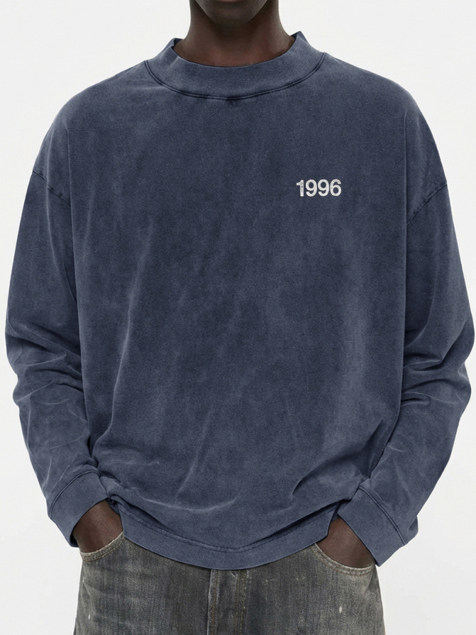 Men's 100% Cotton Vintage Washed and Distressed 1996 Crew Neck Long-Sleeved T-shirt