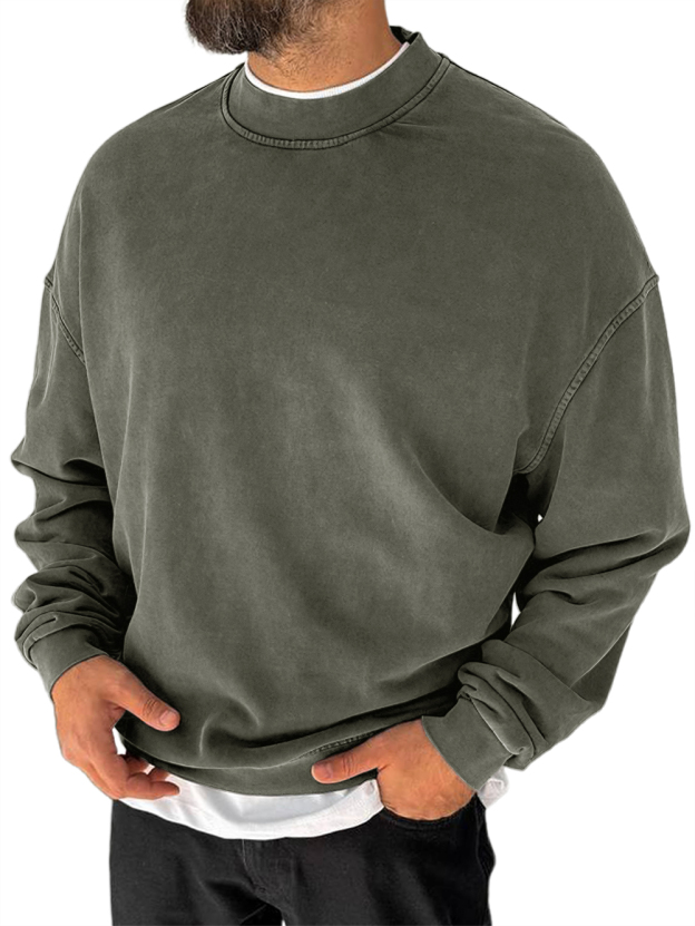 Men's 100% Cotton Washed Distressed Crew Neck Vintage Casual Long-sleeved Sweatshirt