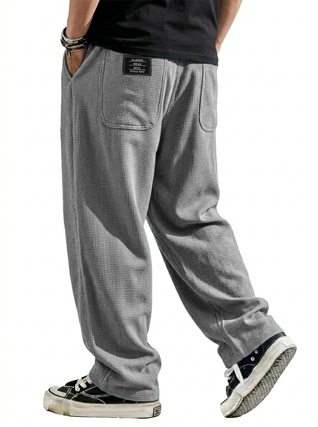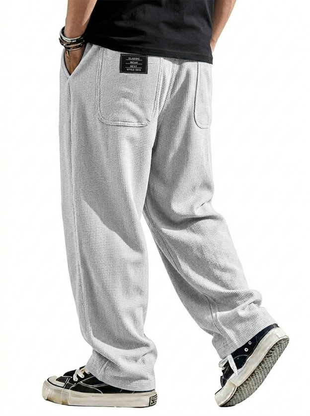 Men's Breathable Waffle-knit Embroidered Logo Casual Trousers