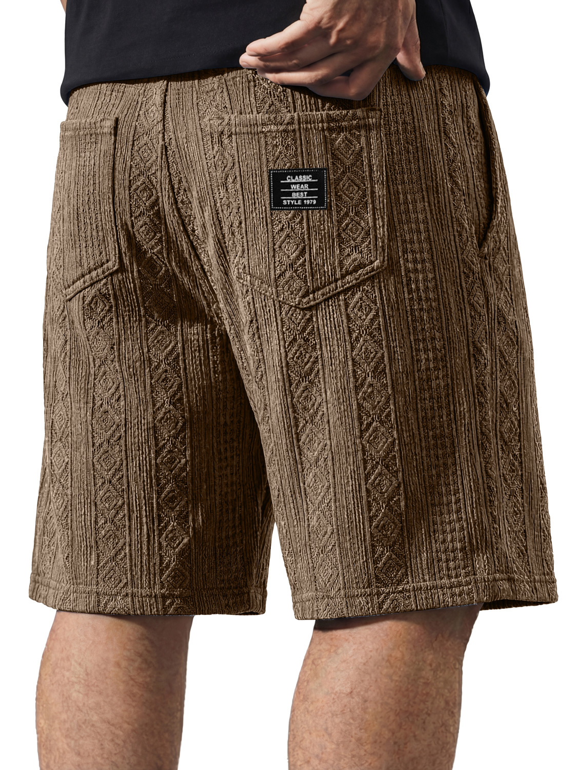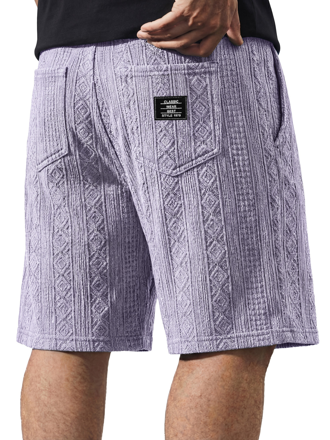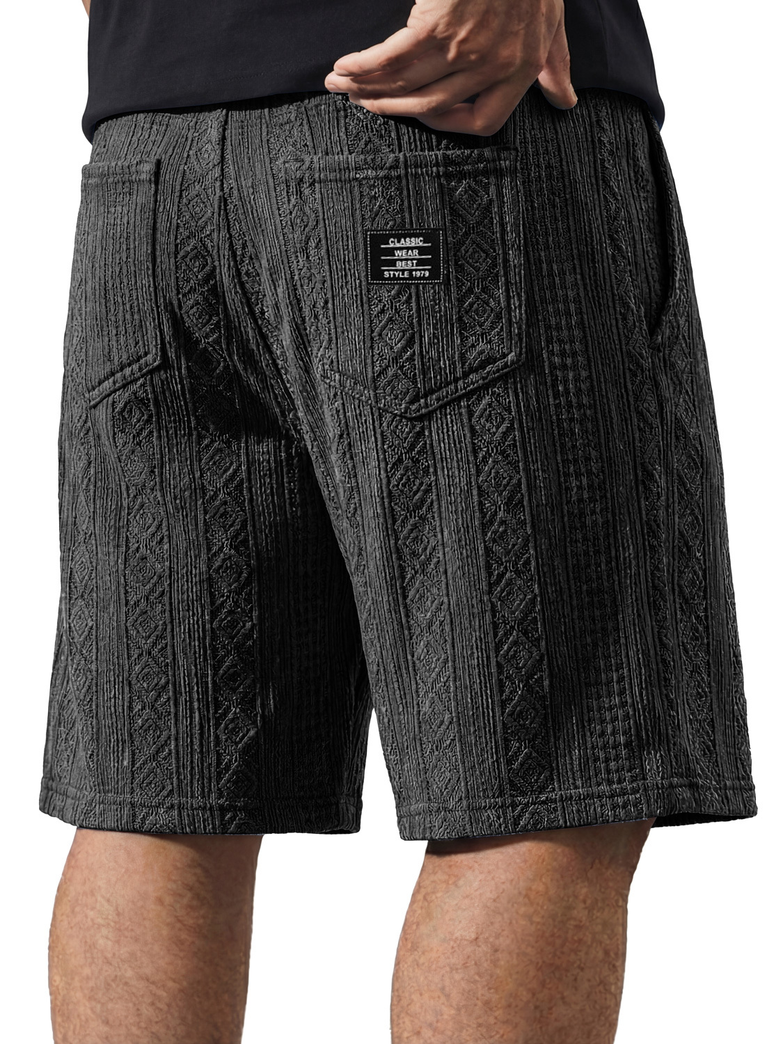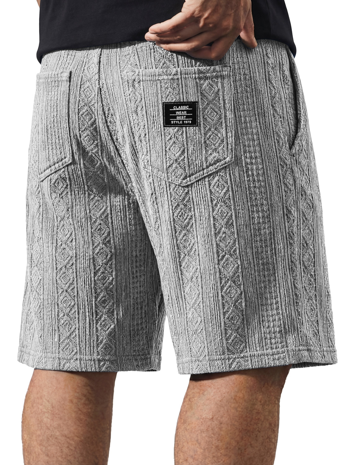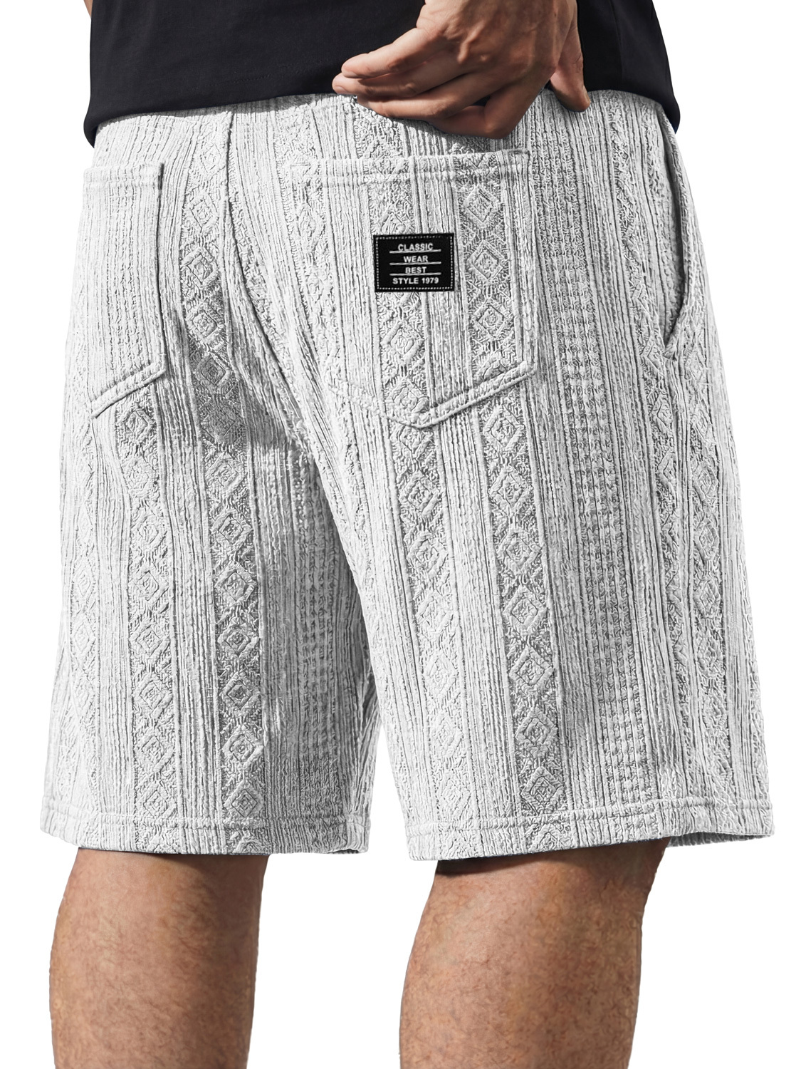Men's Casual Jacquard Textured Embroidered Logo Shorts