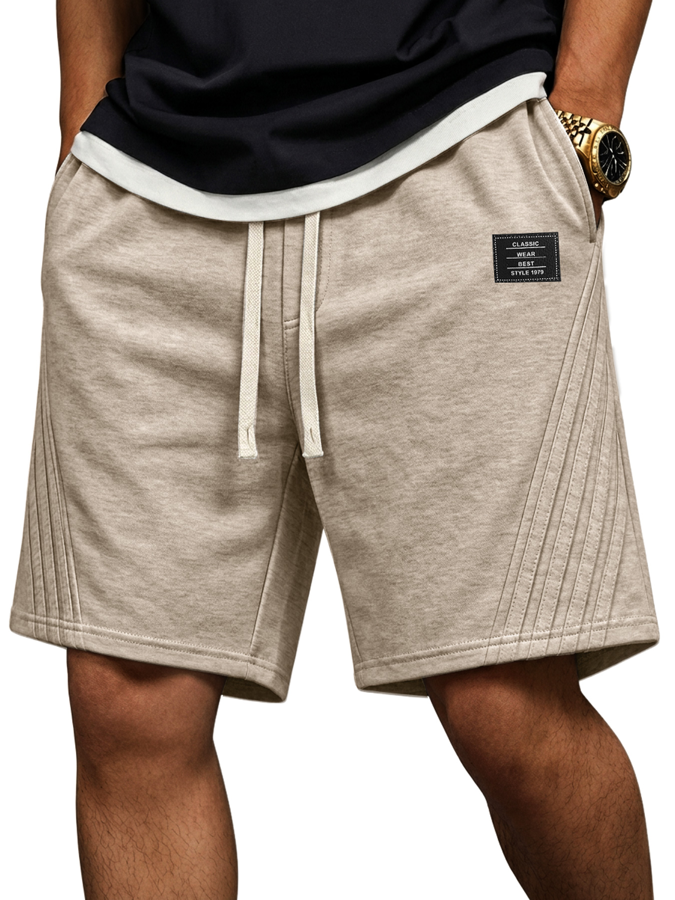 Men's Casual Loose-fitting Shorts With Diagonal Stripes And Embroidered Logo On The Side