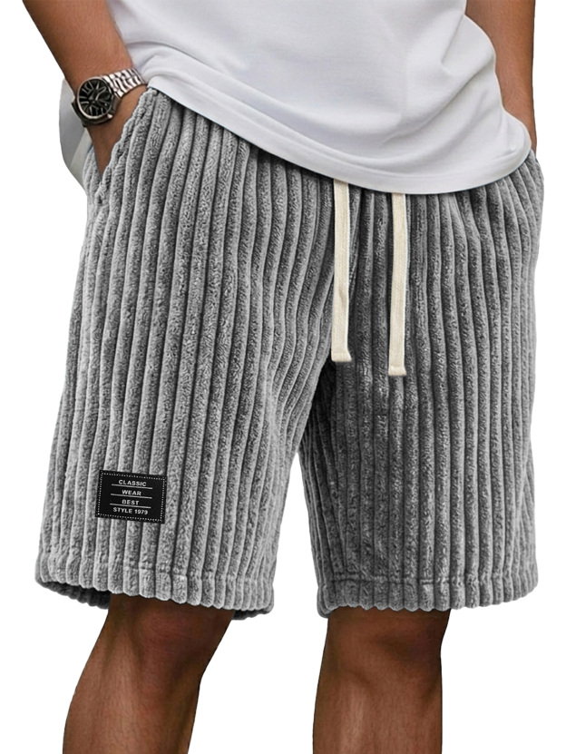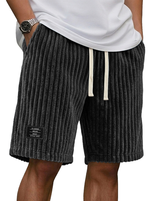 Men's Casual Retro Corduroy Embroidered Logo Loose Shorts