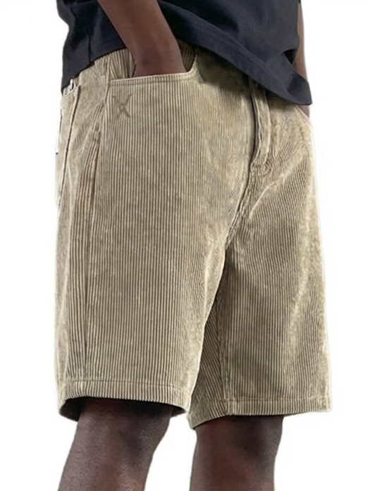 Men's Casual Retro Multi Pocket Embroidered Logo Workwear Corduroy Shorts