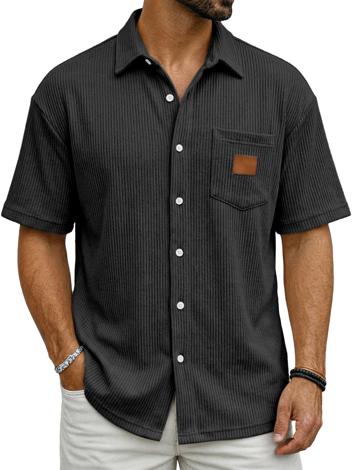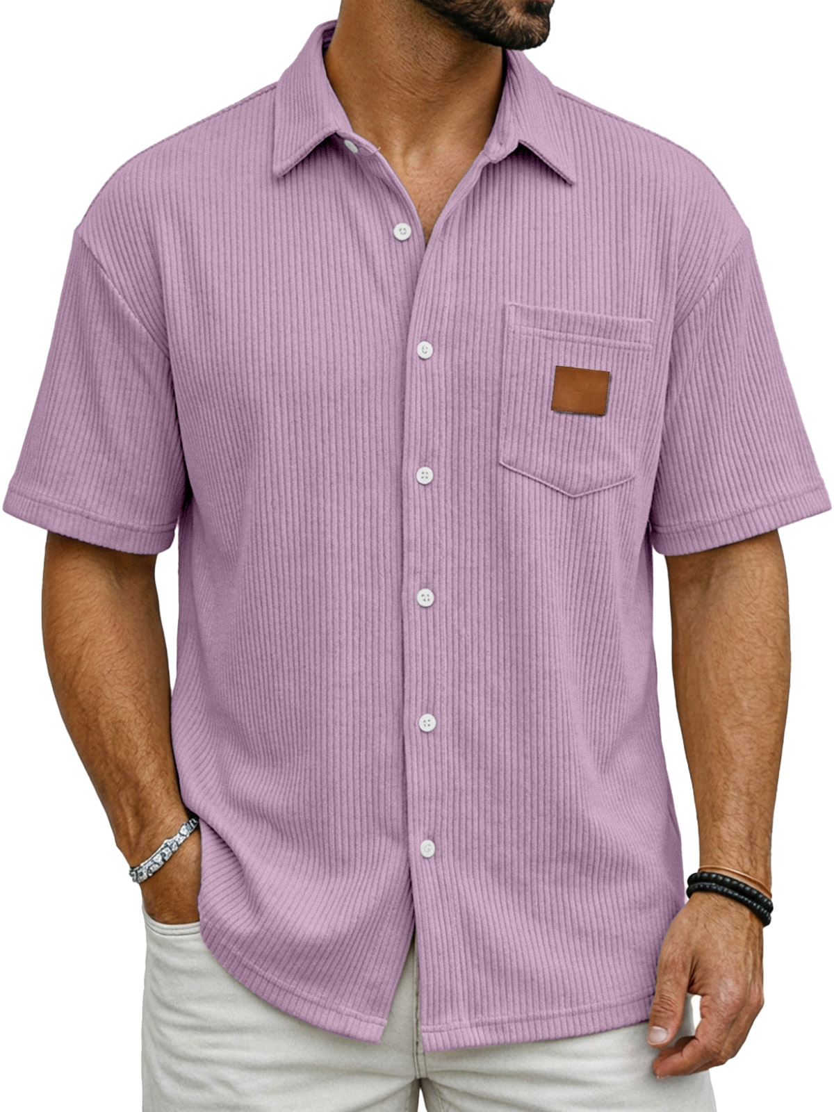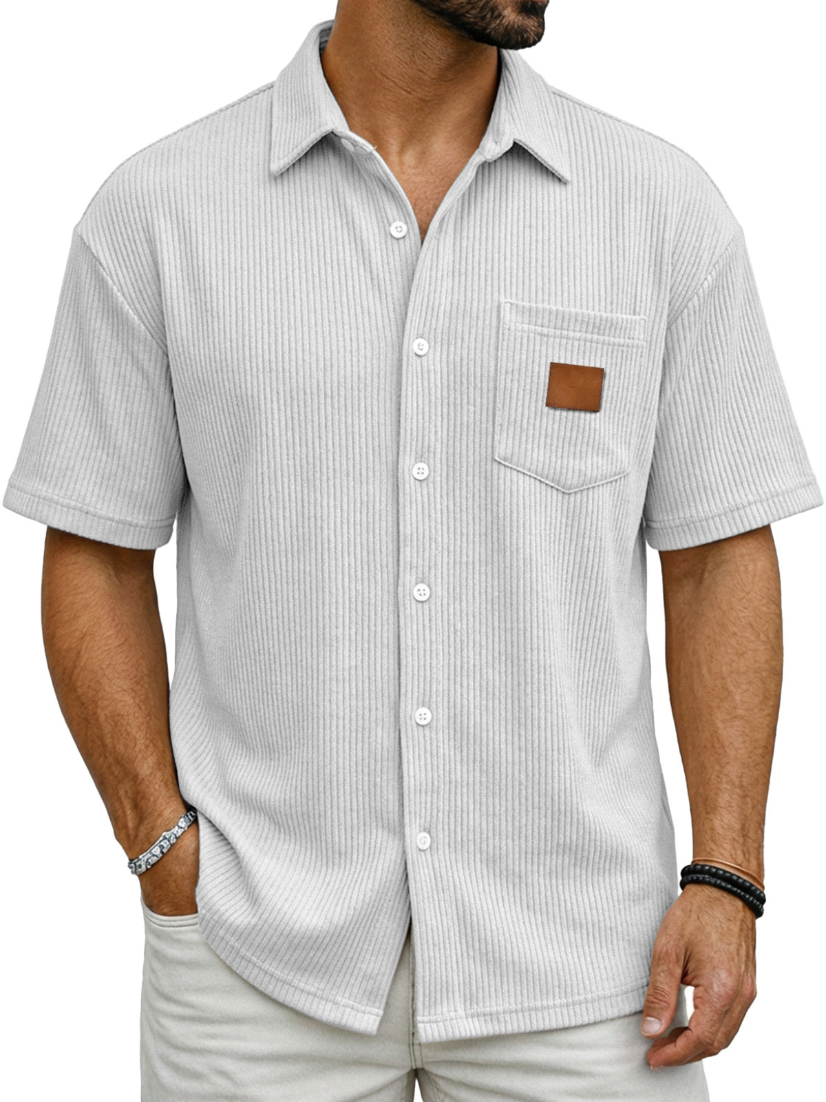 Men's Casual Simple Vertical Ribbed Fabric Shirt With Logo
