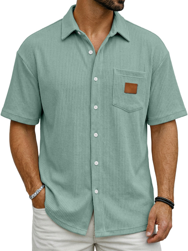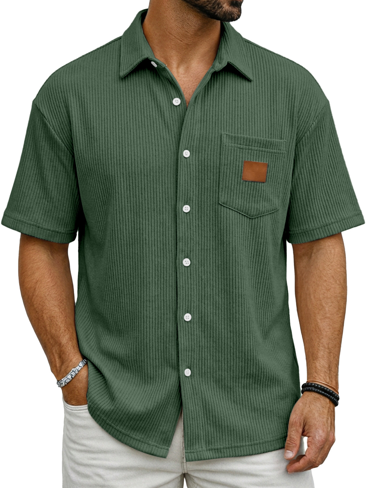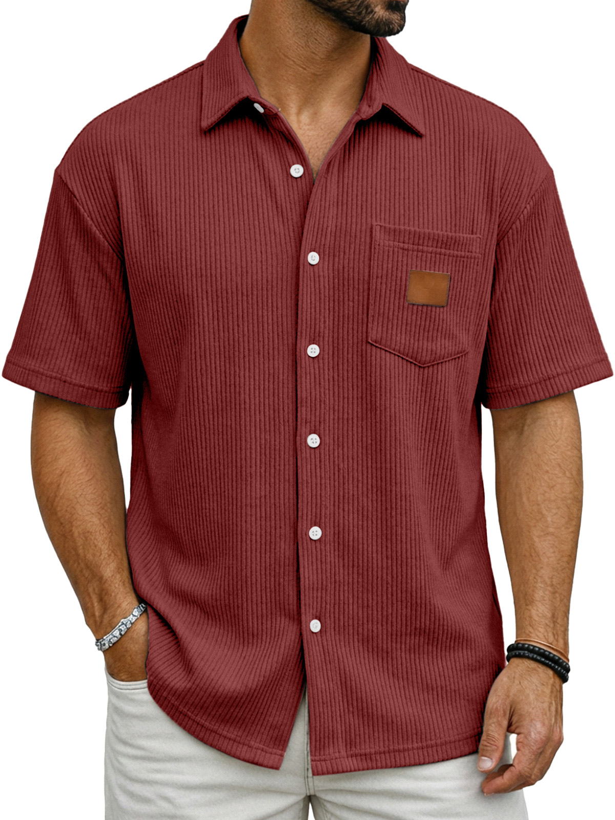 Men's Casual Simple Vertical Ribbed Fabric Shirt With Logo