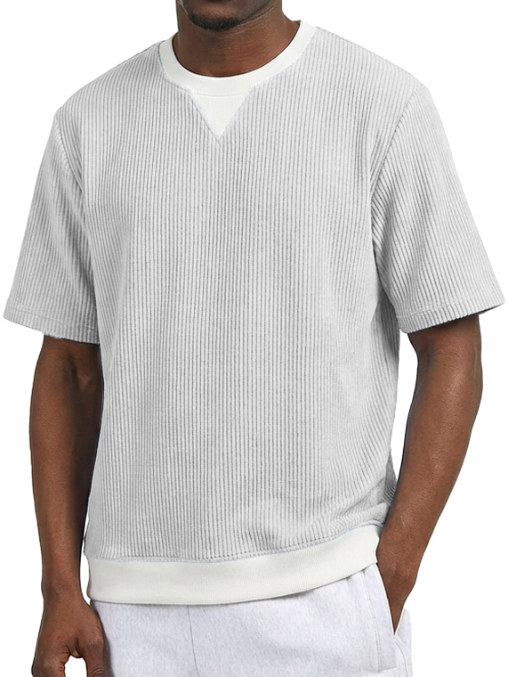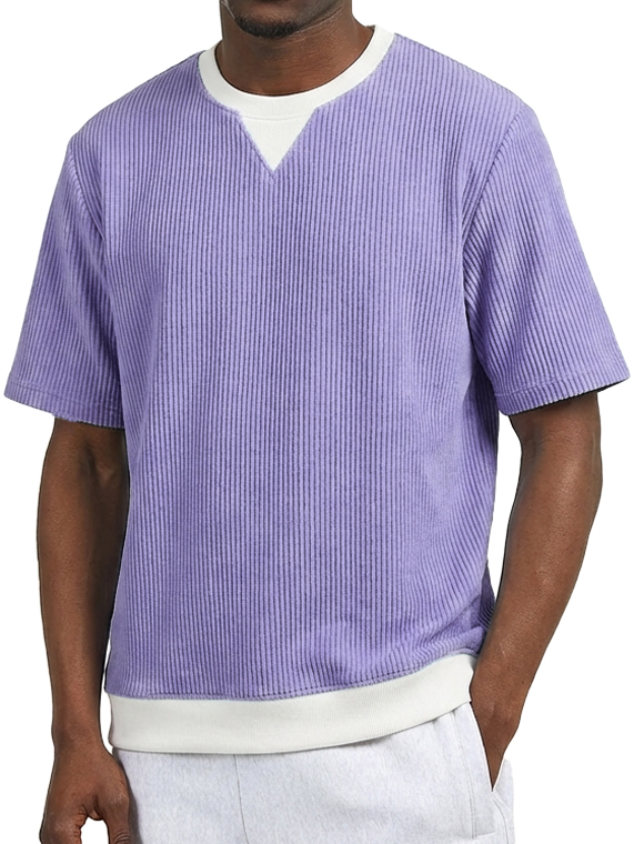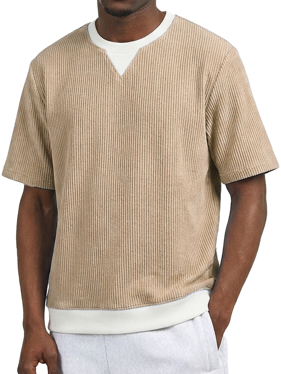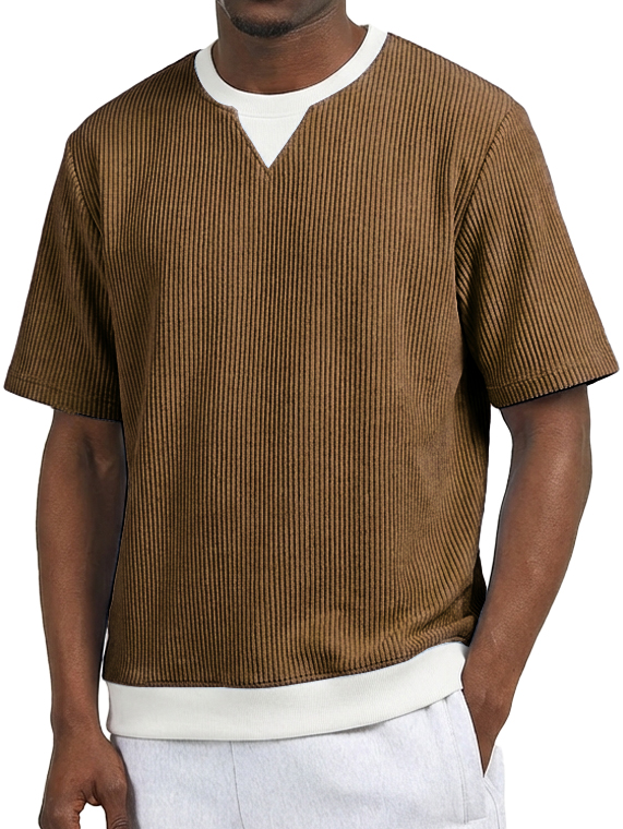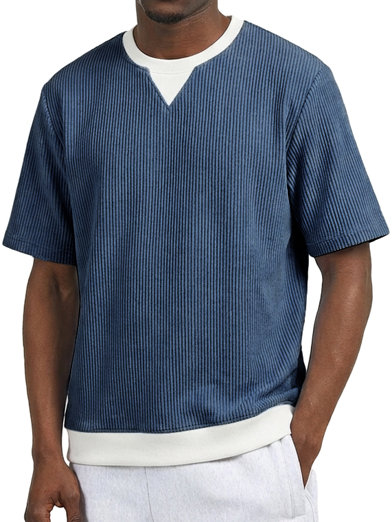 Men's Casual V-Neck Faux Two-Piece Color Block Short-Sleeve T-Shirt