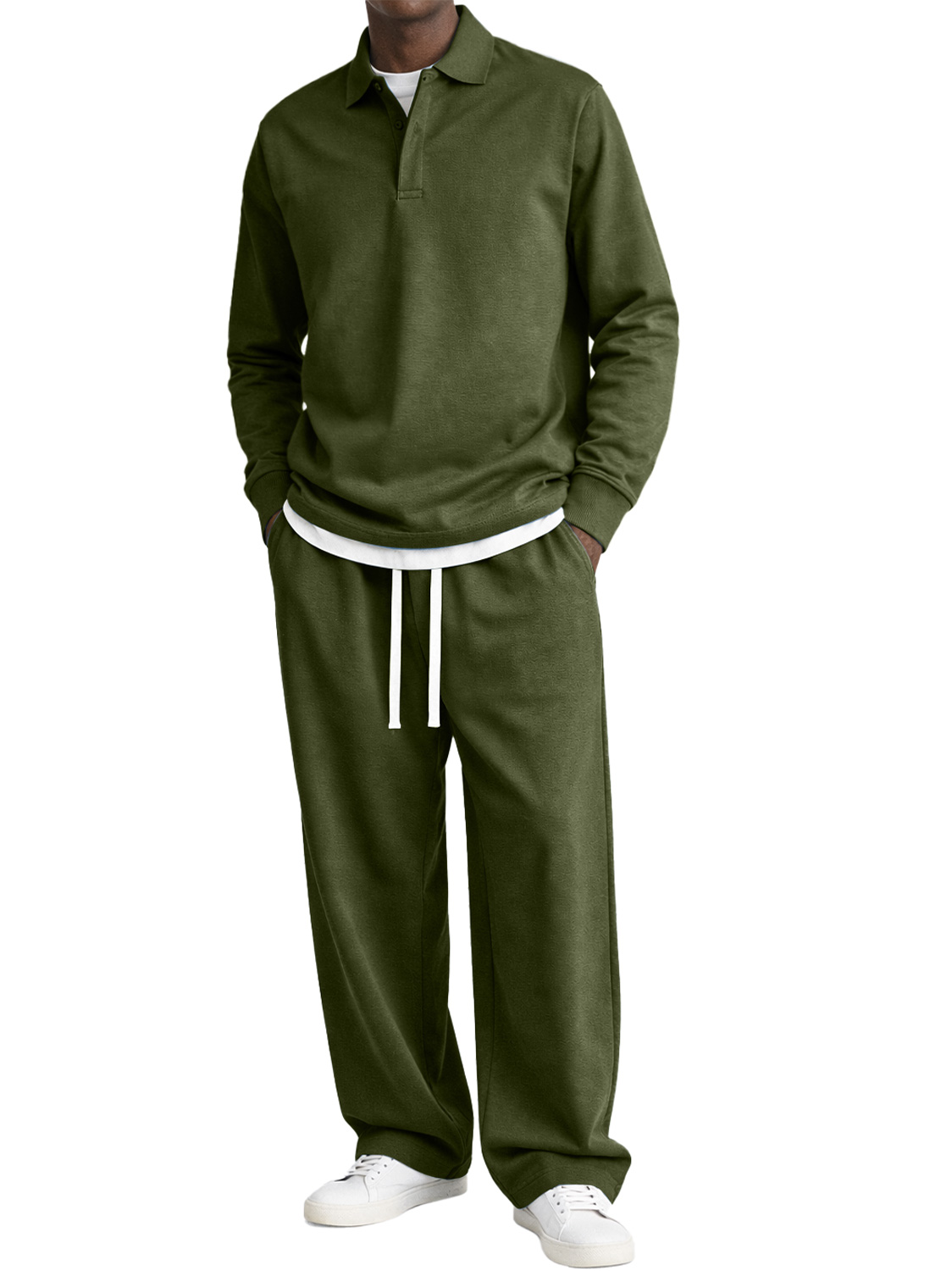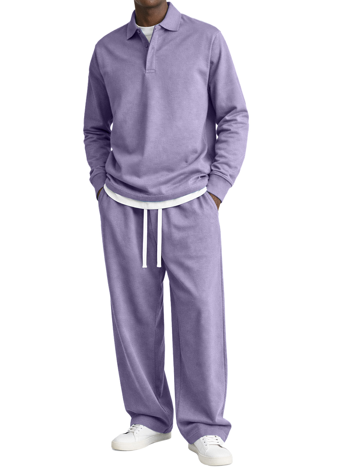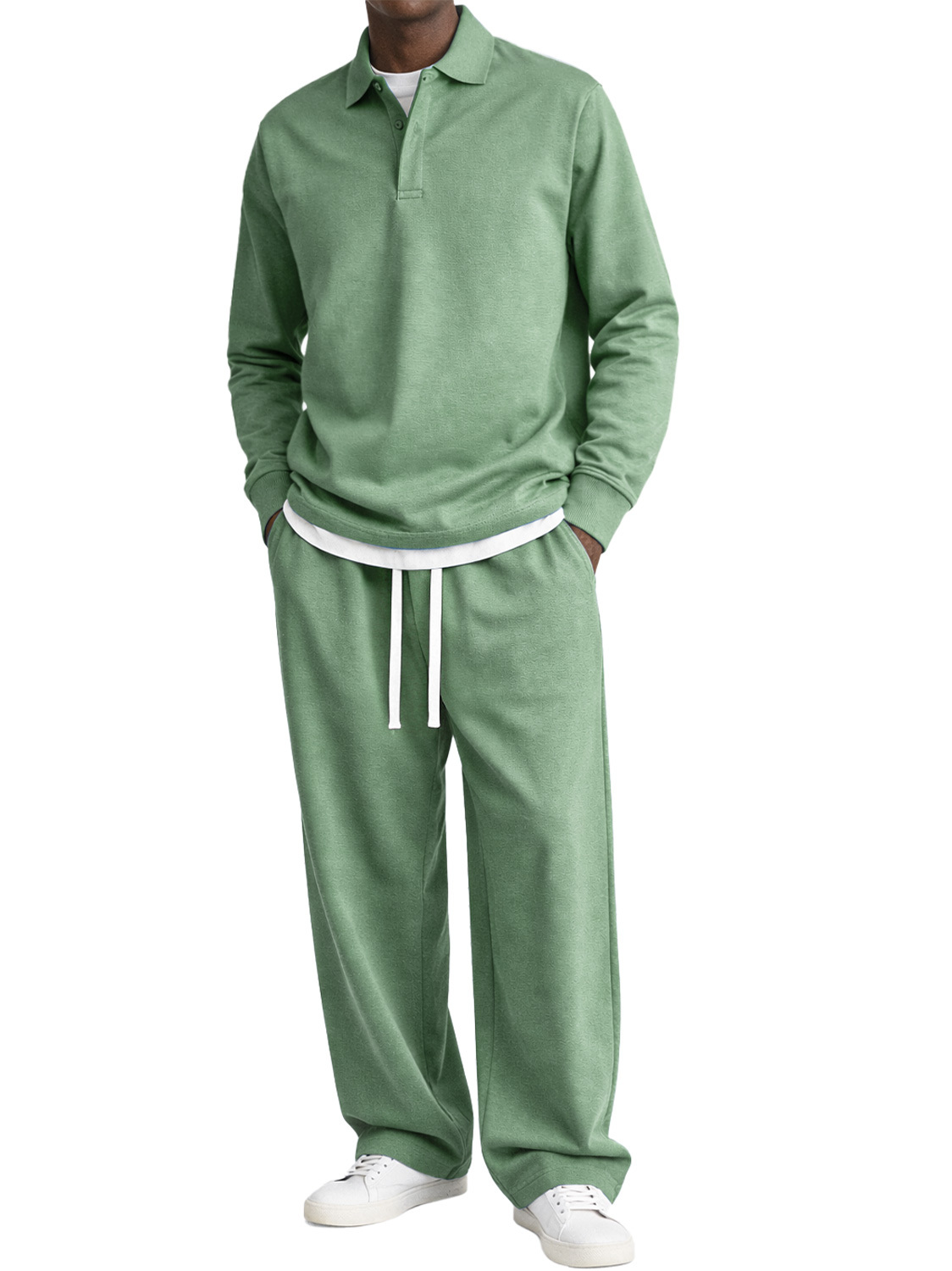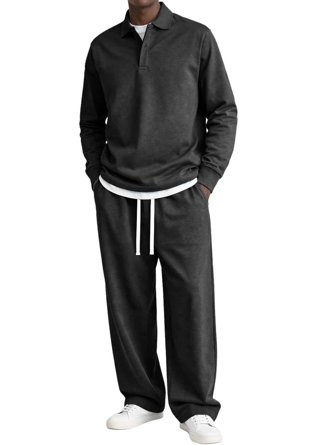 Men's Comfortable Polo Shirt And Trousers Two-piece Set With Concealed Placket Design