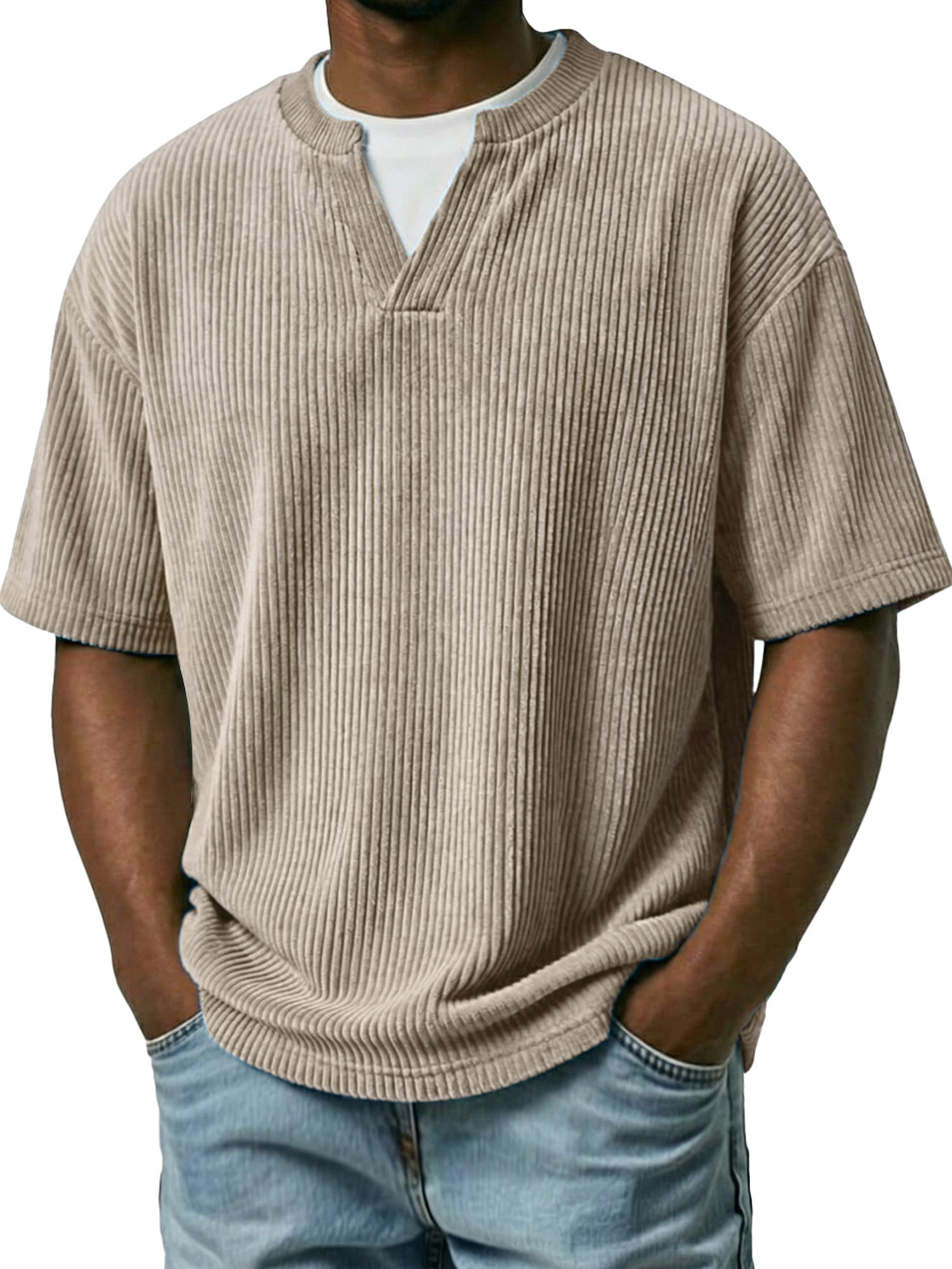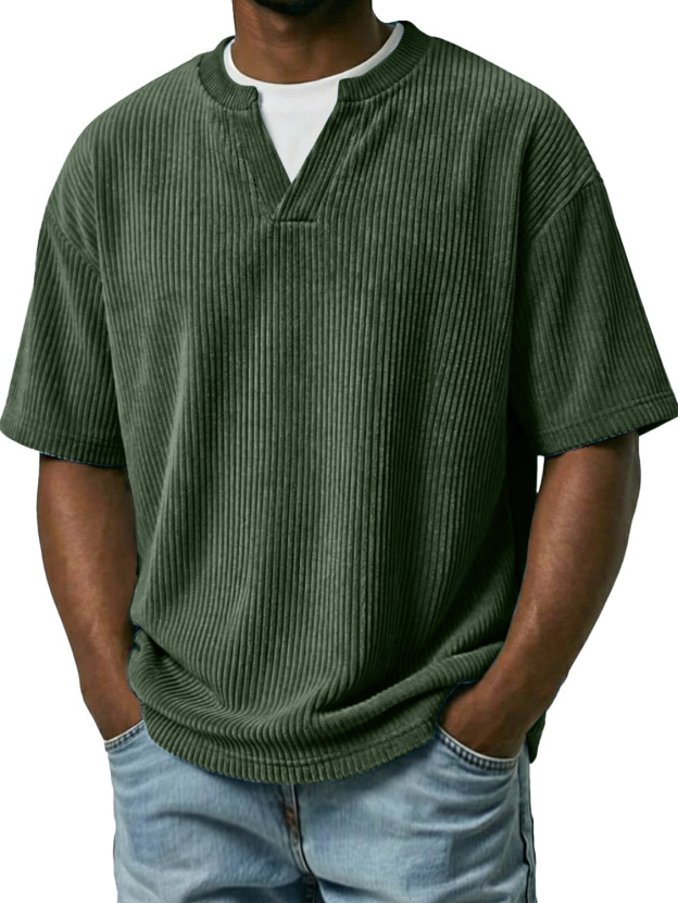 Men's Corduroy Faux Two-piece Double-collar Casual Short-sleeved T-shirt