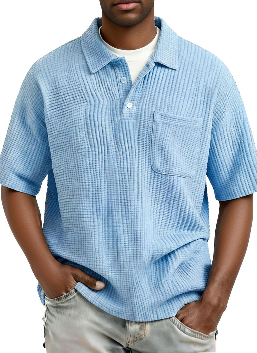 Men's Fashion Casual Pleated Fabric Short-Sleeve Polo Shirt