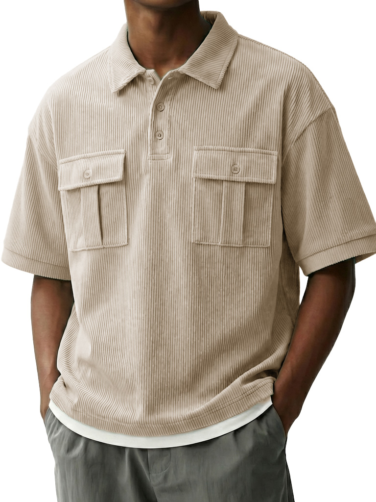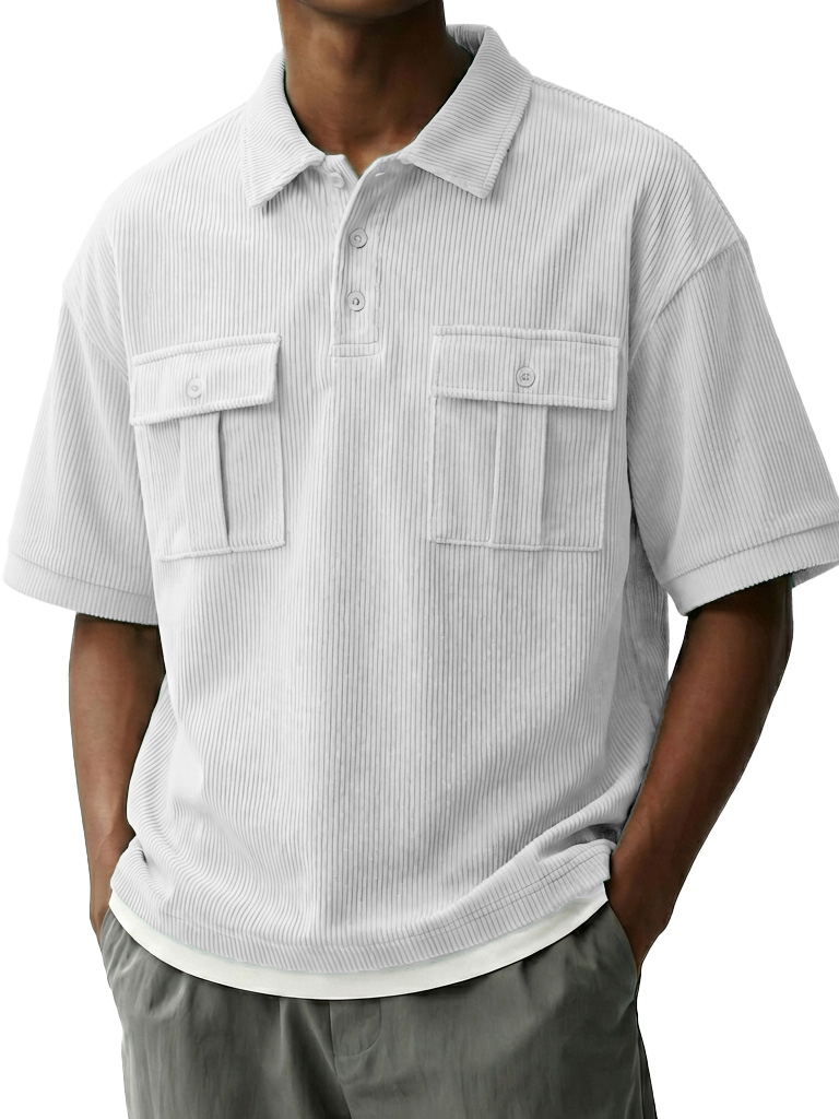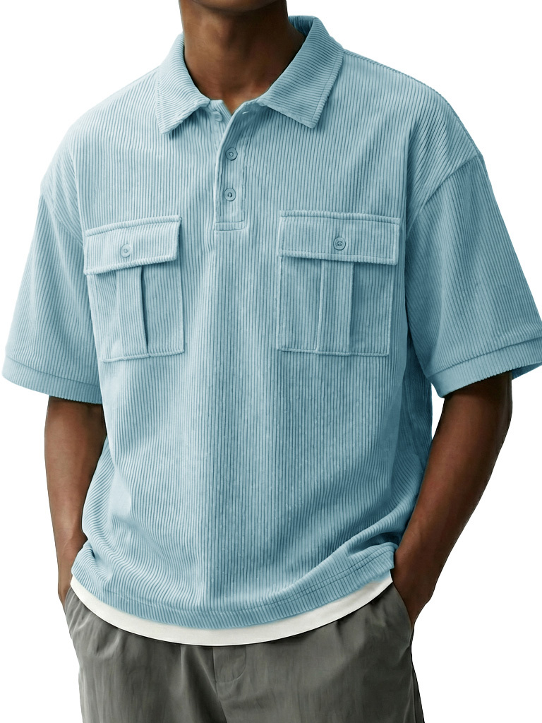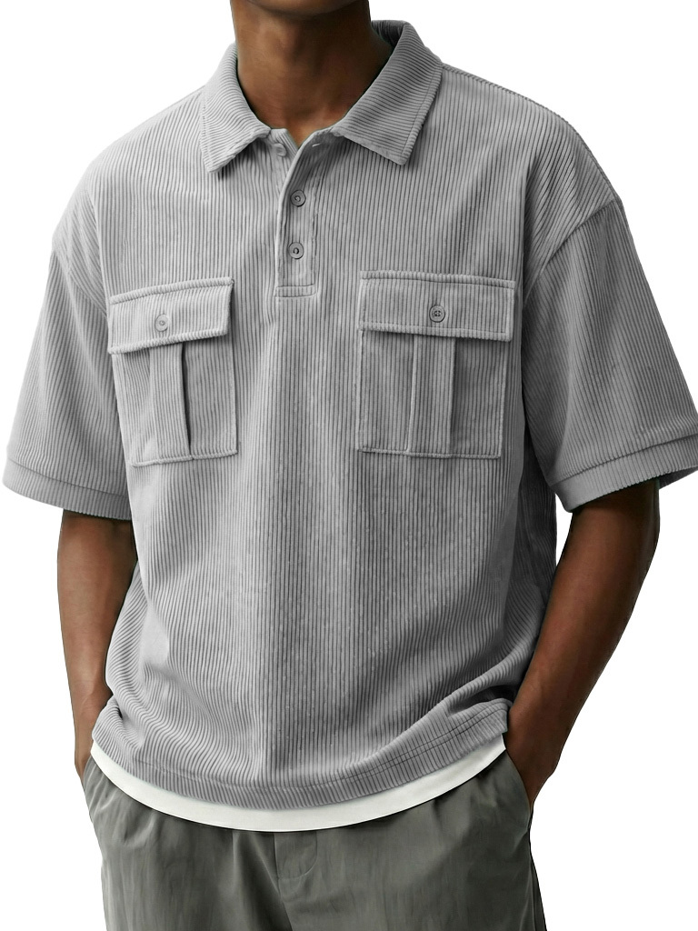 Men's Fashionable Retro Workwear Pocket Short-sleeved Polo Shirt with Lapel