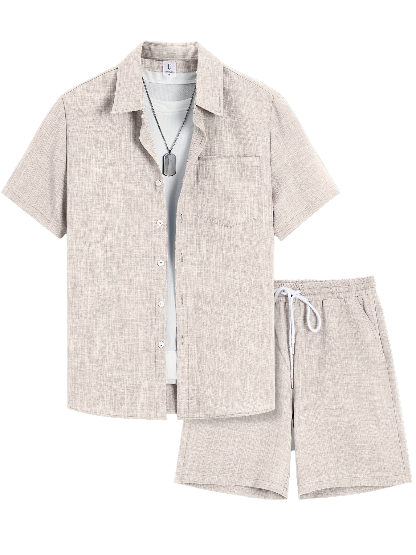 Men's Old Money Style Cotton and Linen Shirt and Shorts Set OOTD