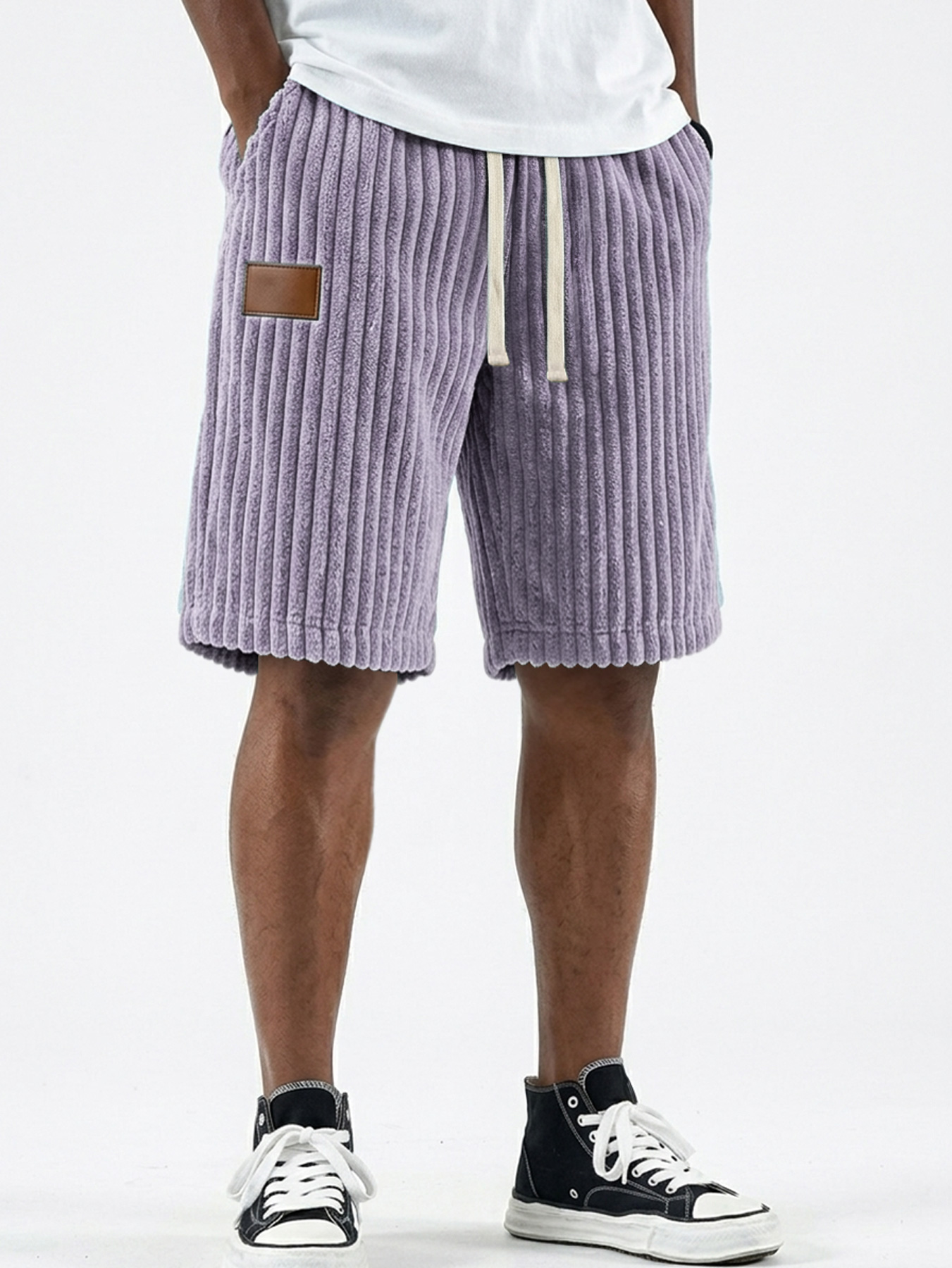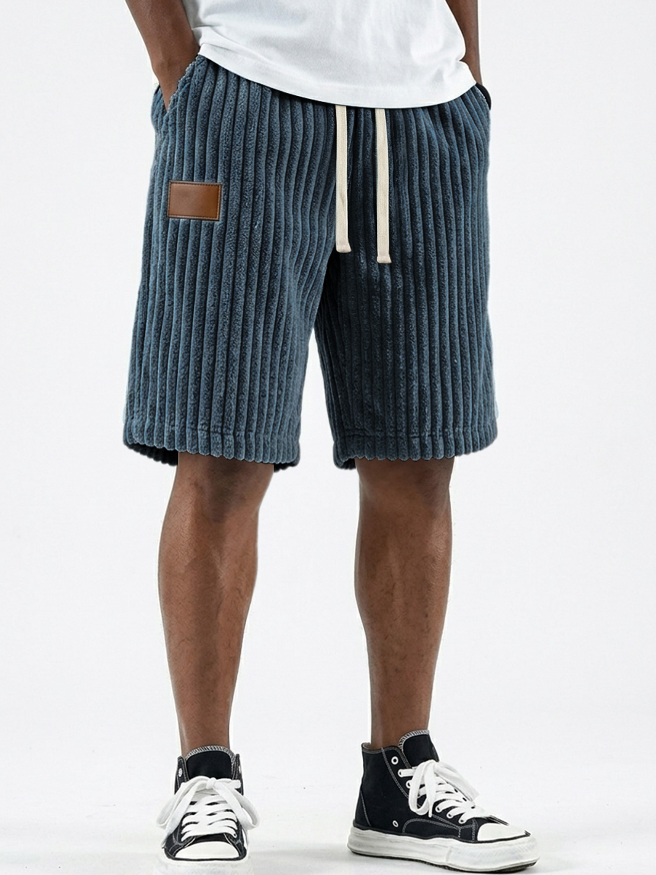 Men's Retro Corduroy Leather Label Casual Loose Shorts
