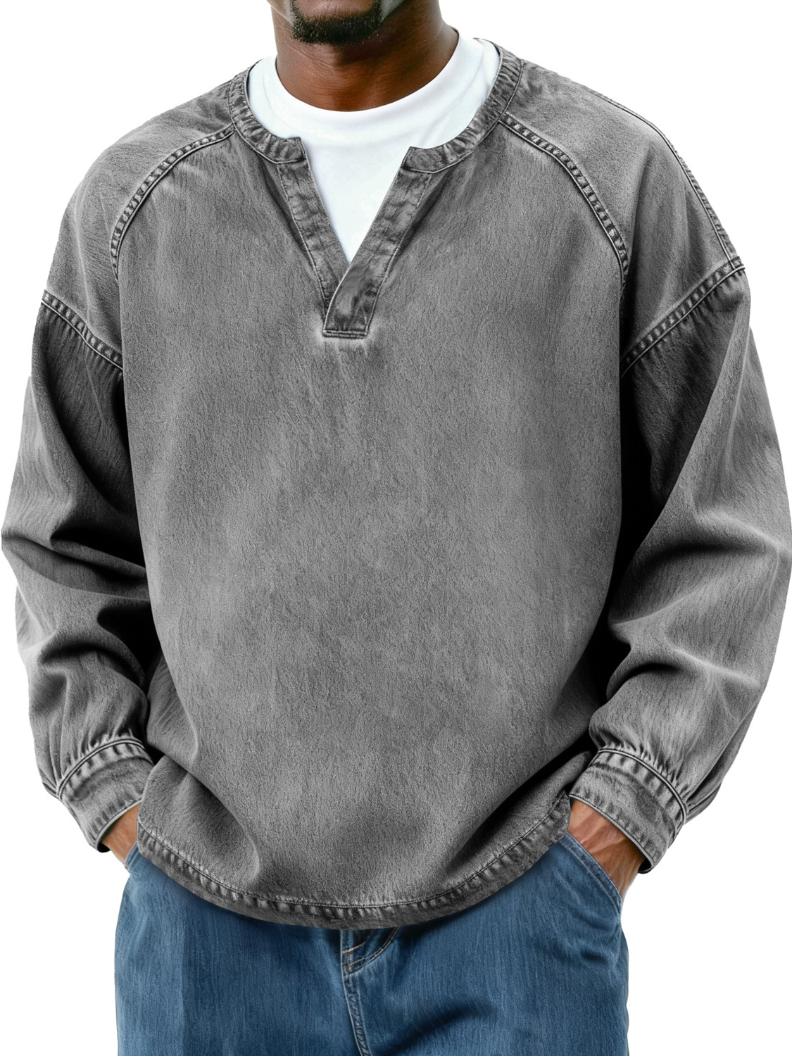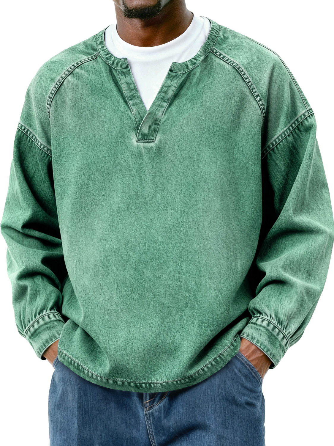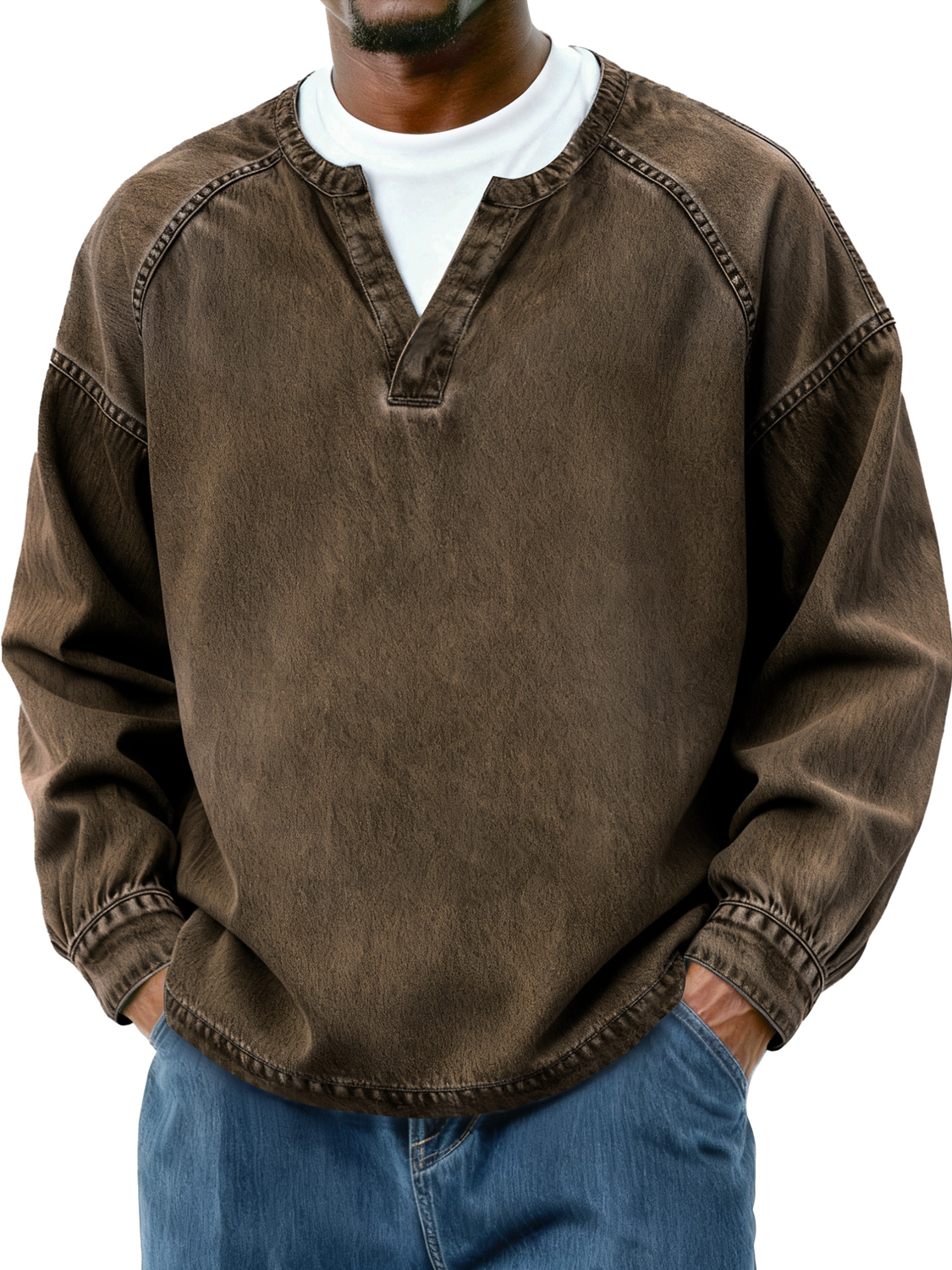 Men's Retro Faux Two-Piece Raglan Patchwork Casual Long-Sleeve T-Shirt