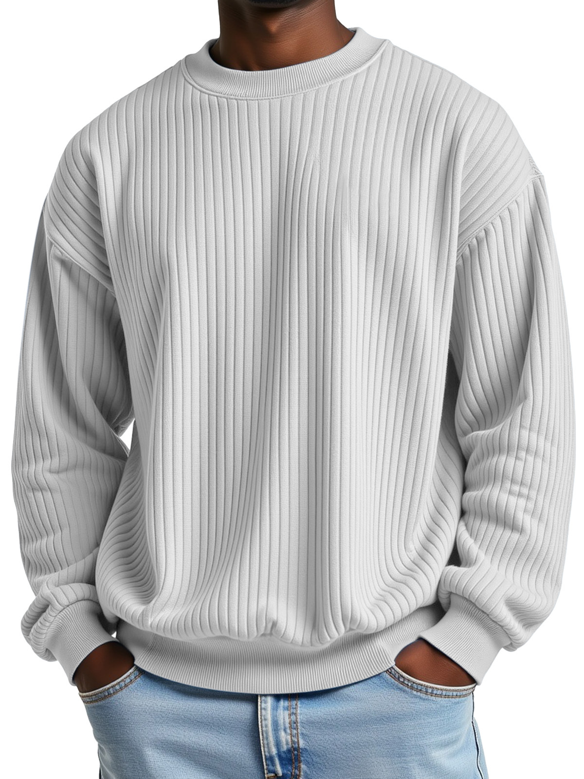 Men's Simple and Comfortable Ribbed Loose Crew Neck Sweatshirt