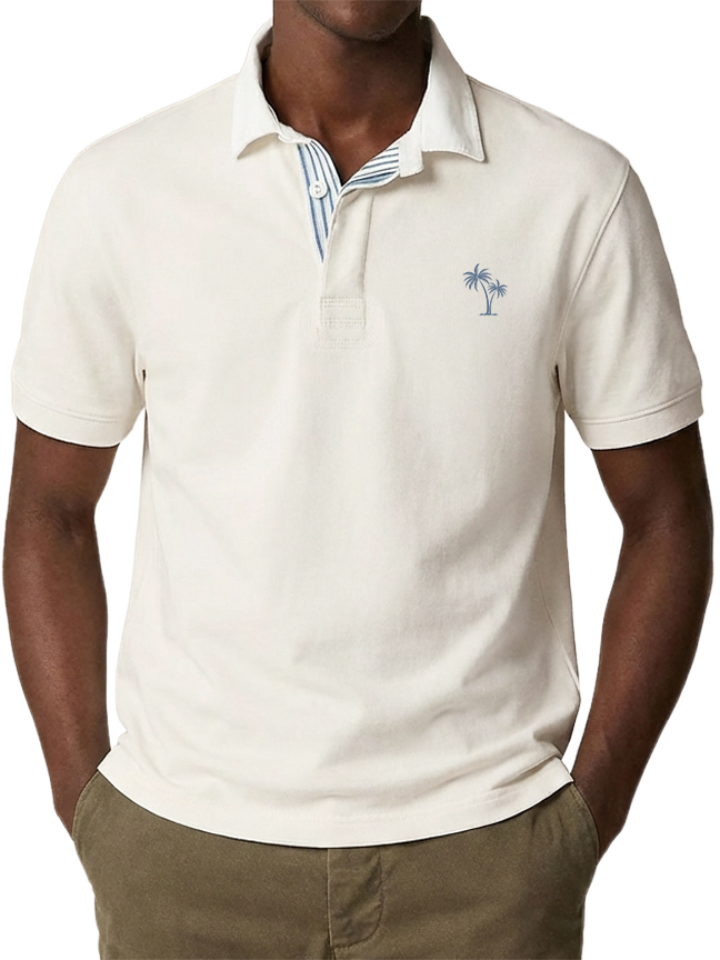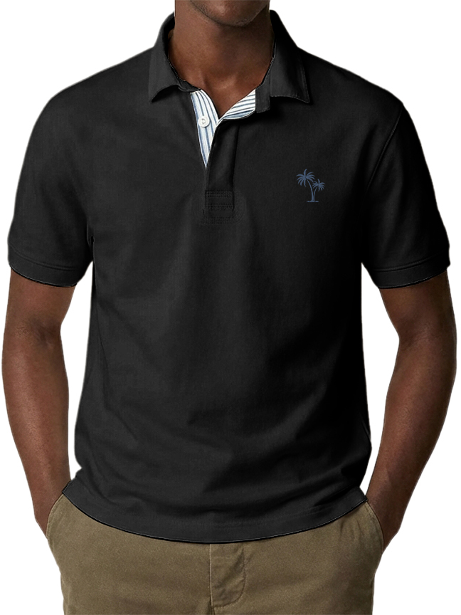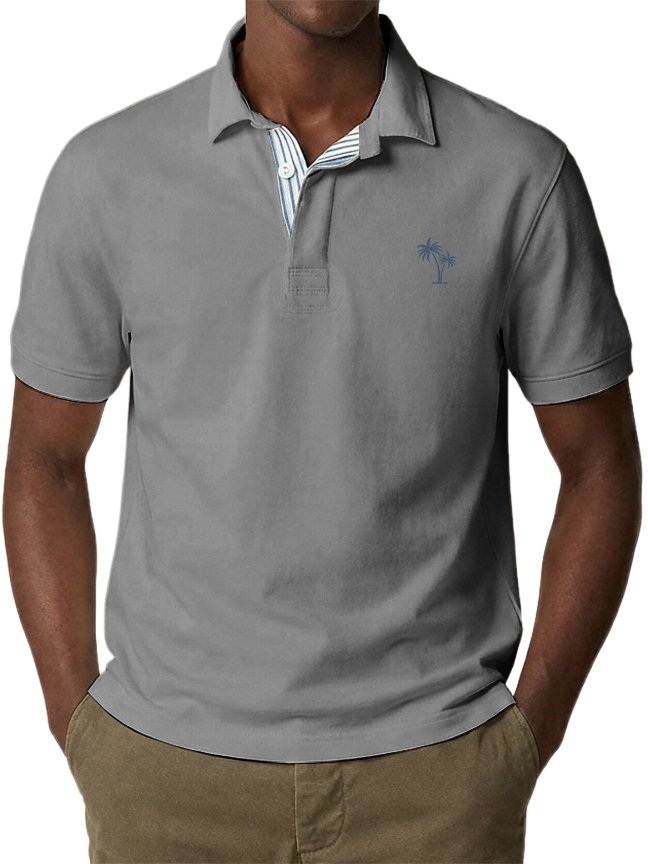 Men's Urban Casual Coconut Tree Stripe Short-Sleeved Polo Shirt
