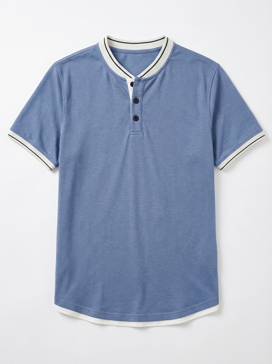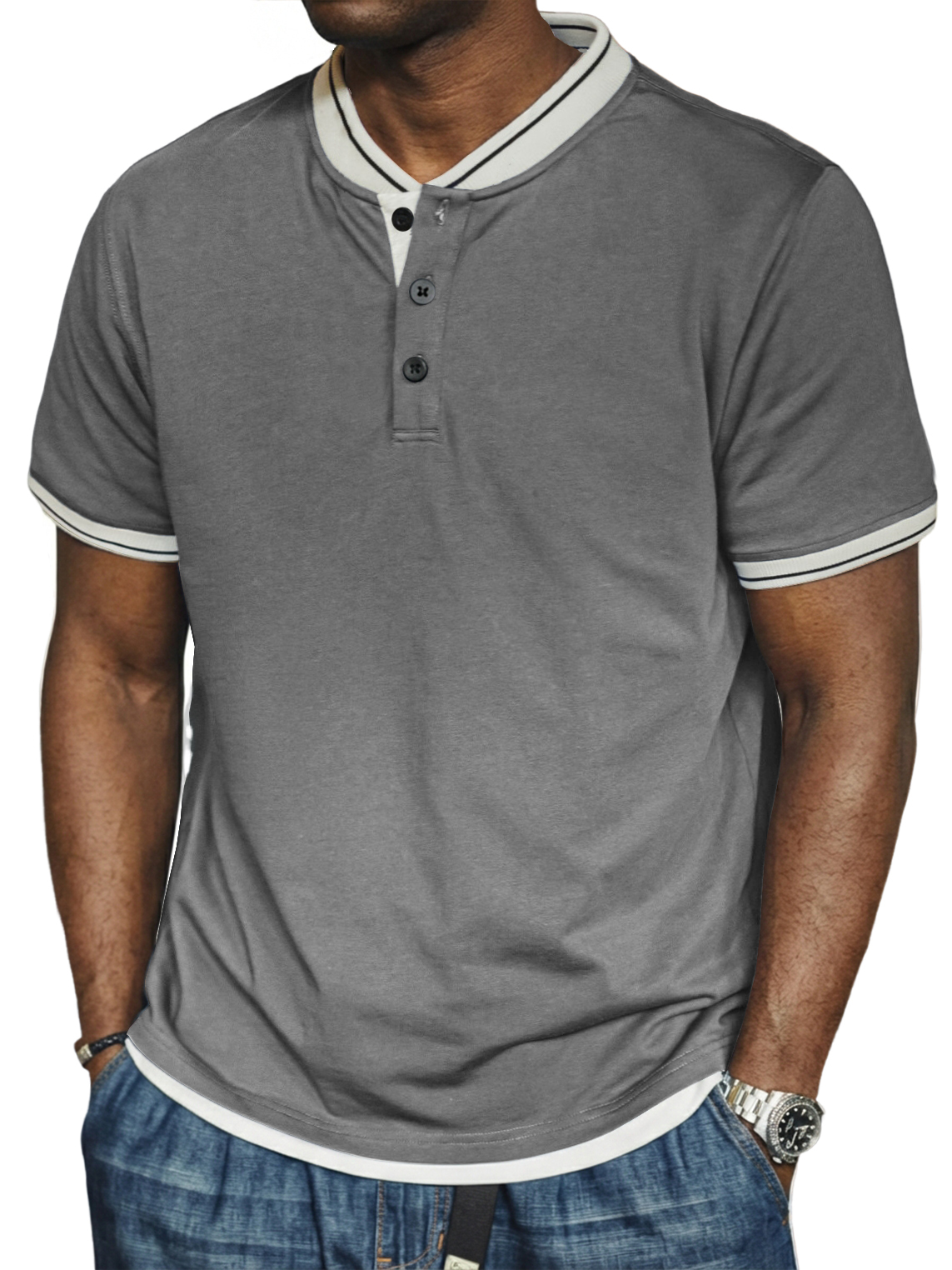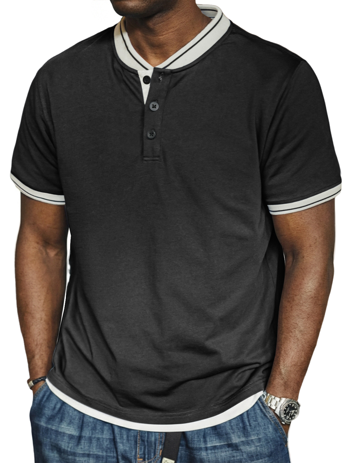 Men's Urban Casual Henry Color Block Classic T-Shirt