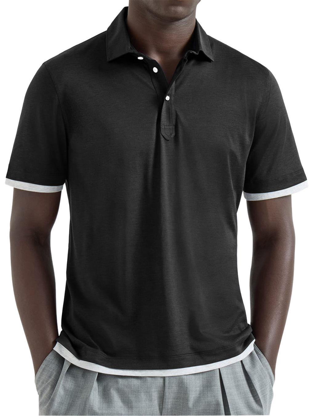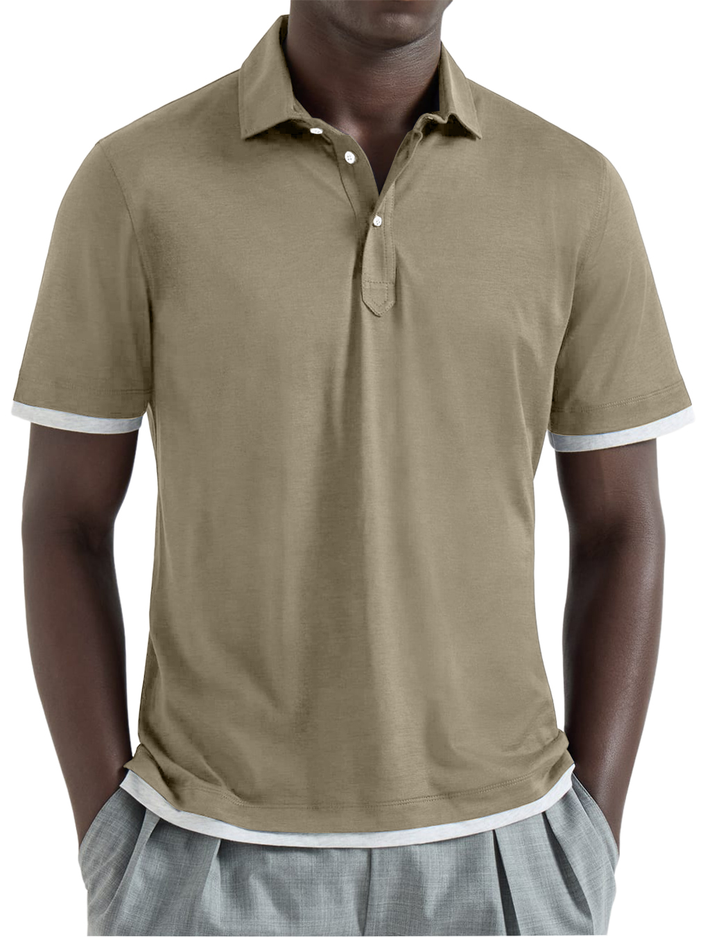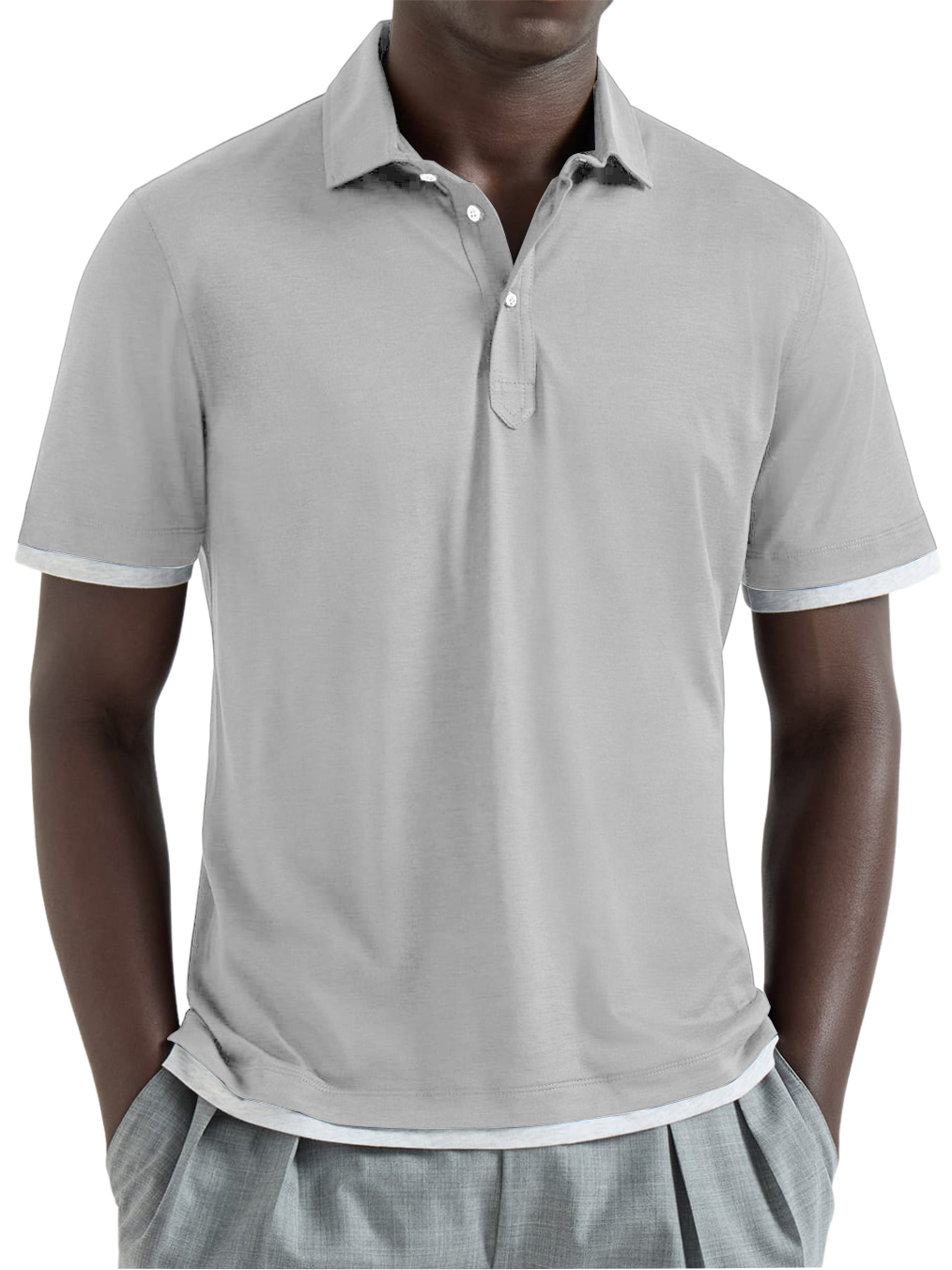 Men's Urban Casual Two-Piece Look Color-Blocked Short-Sleeved Polo Shirt