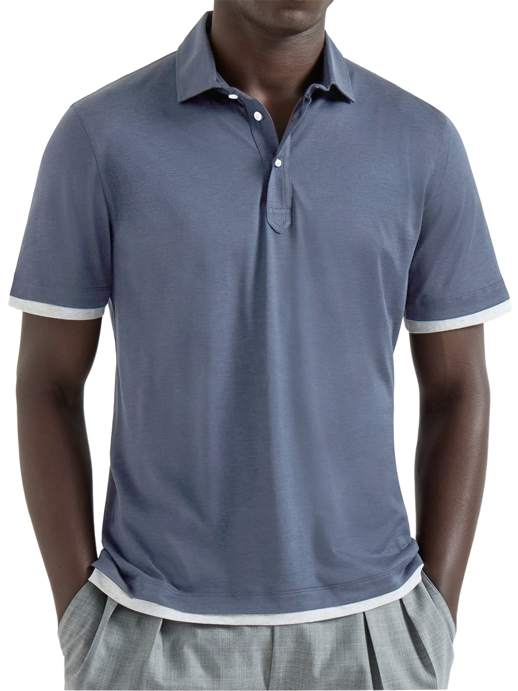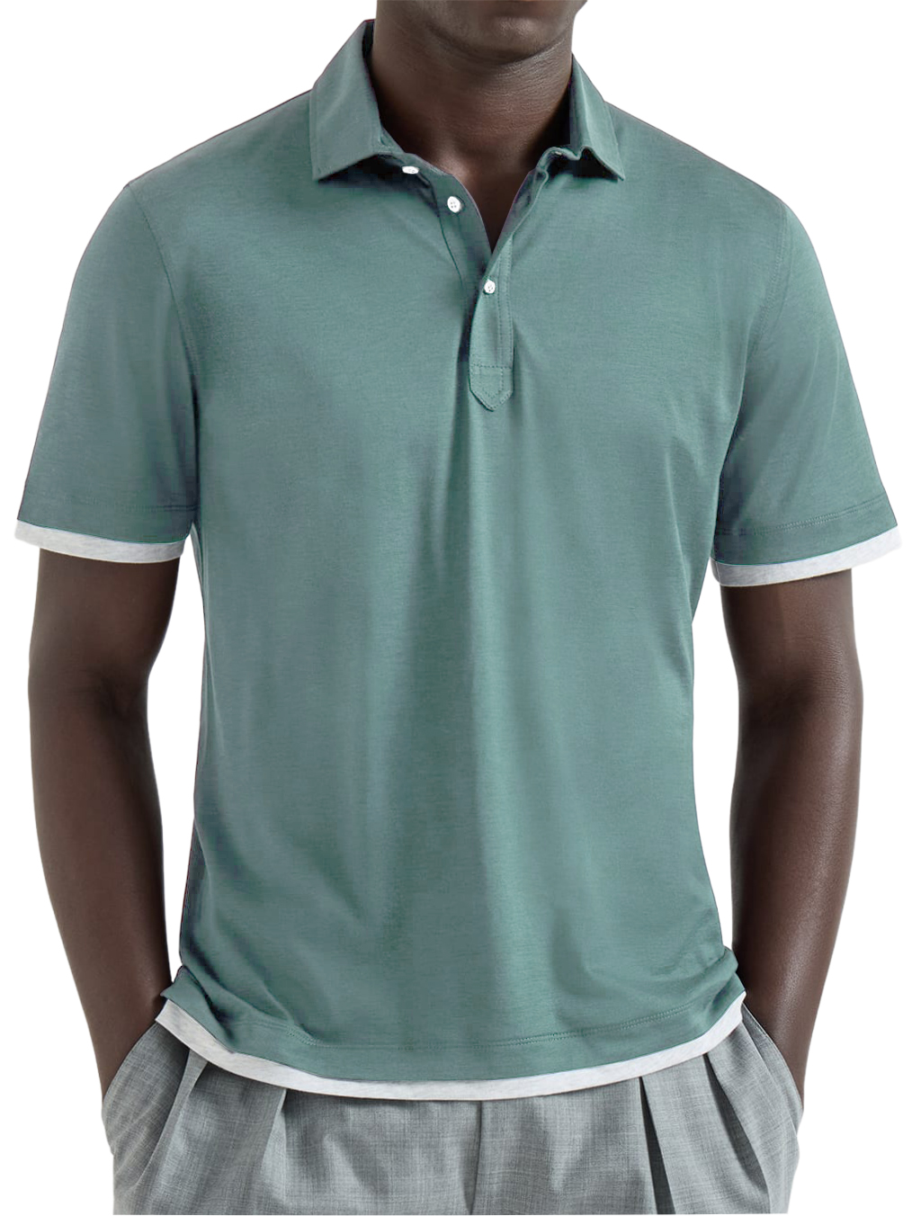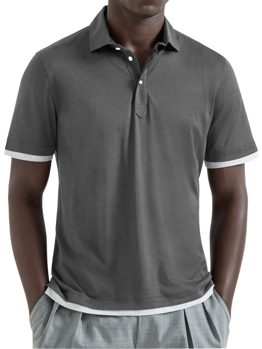 Men's Urban Casual Two-Piece Look Color-Blocked Short-Sleeved Polo Shirt