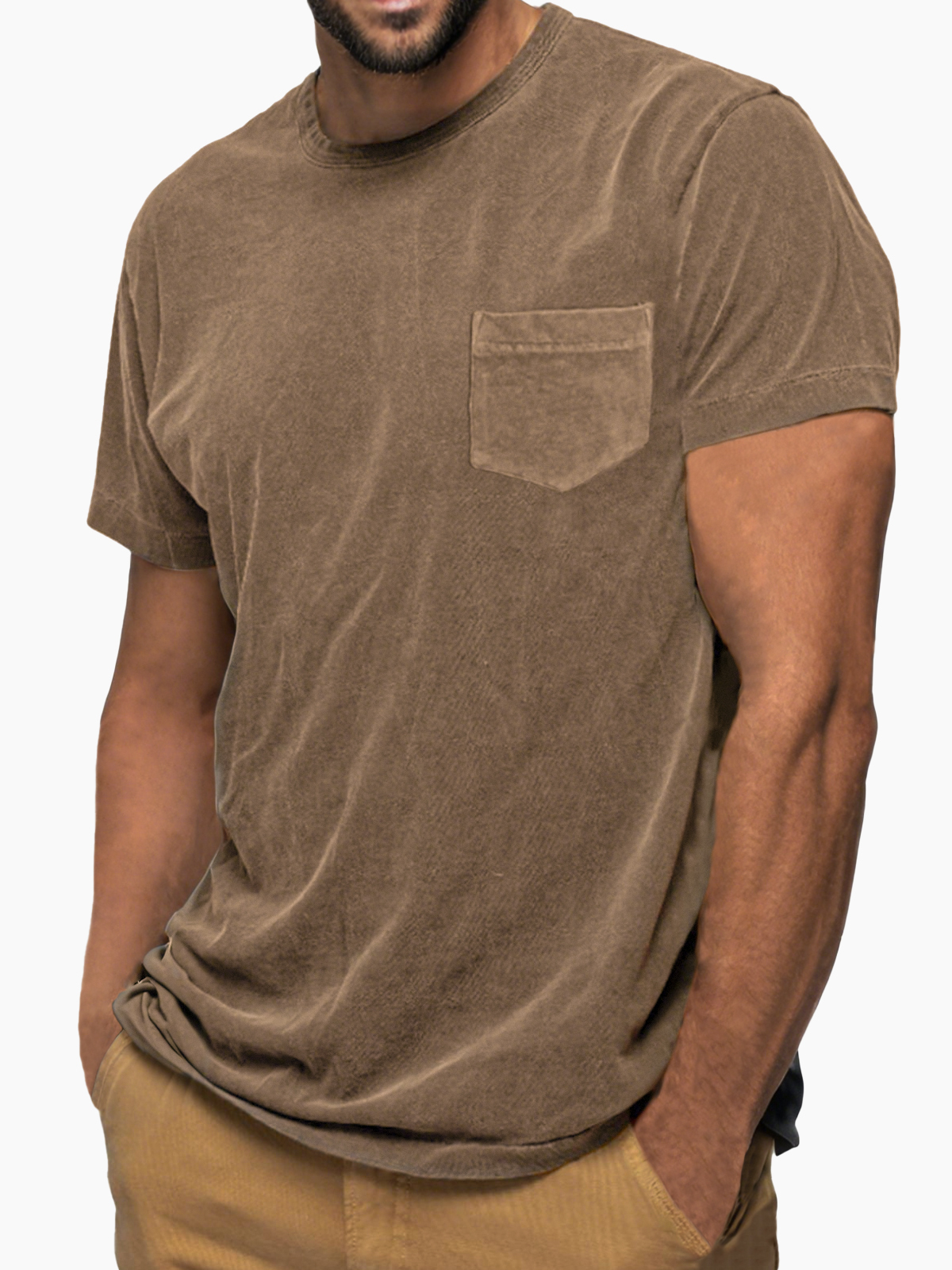 Men's Vintage Distressed Soft Cotton Short Sleeve Basic T-Shirt with Chest Pocket