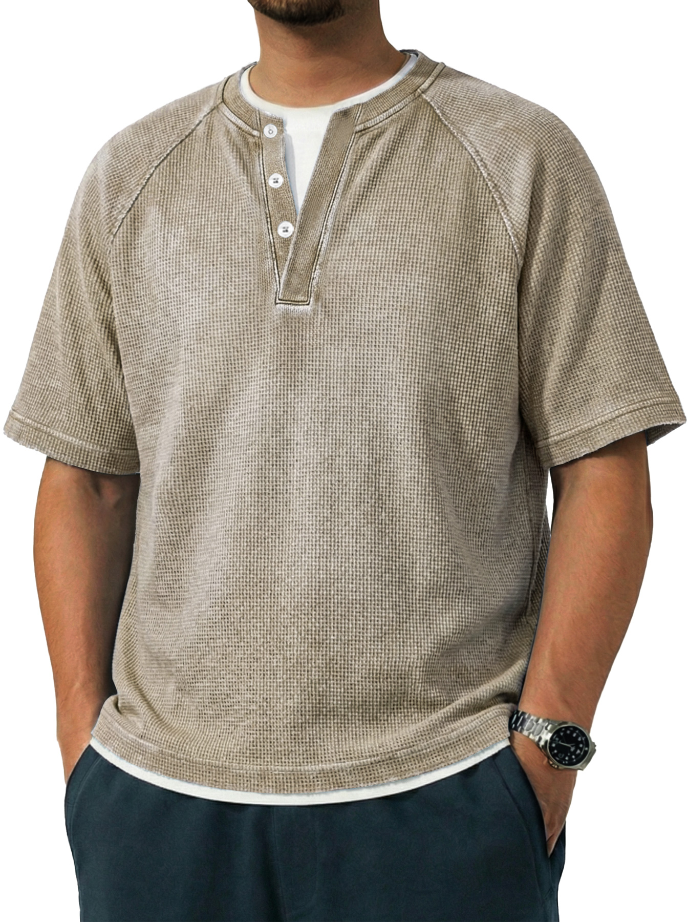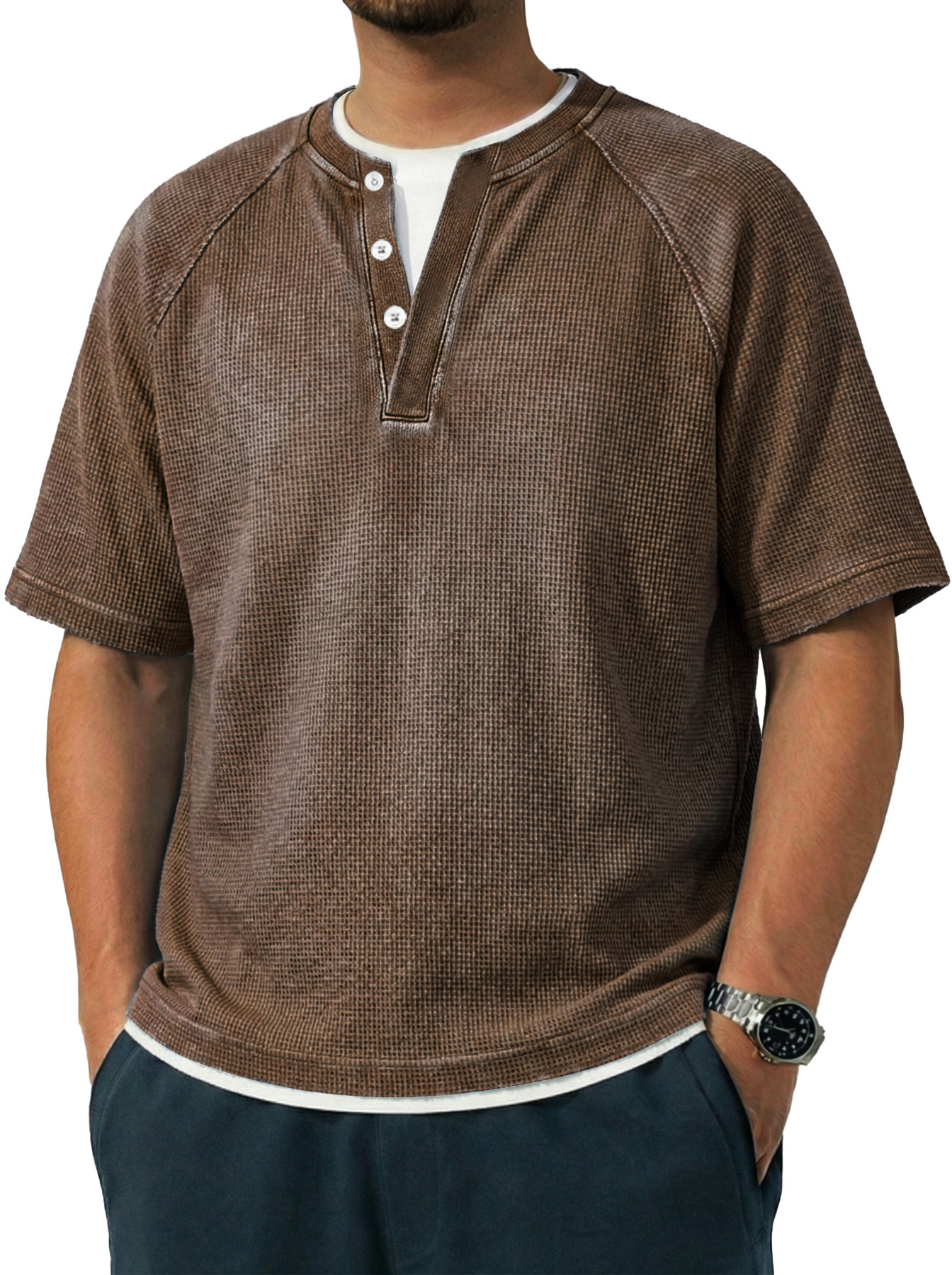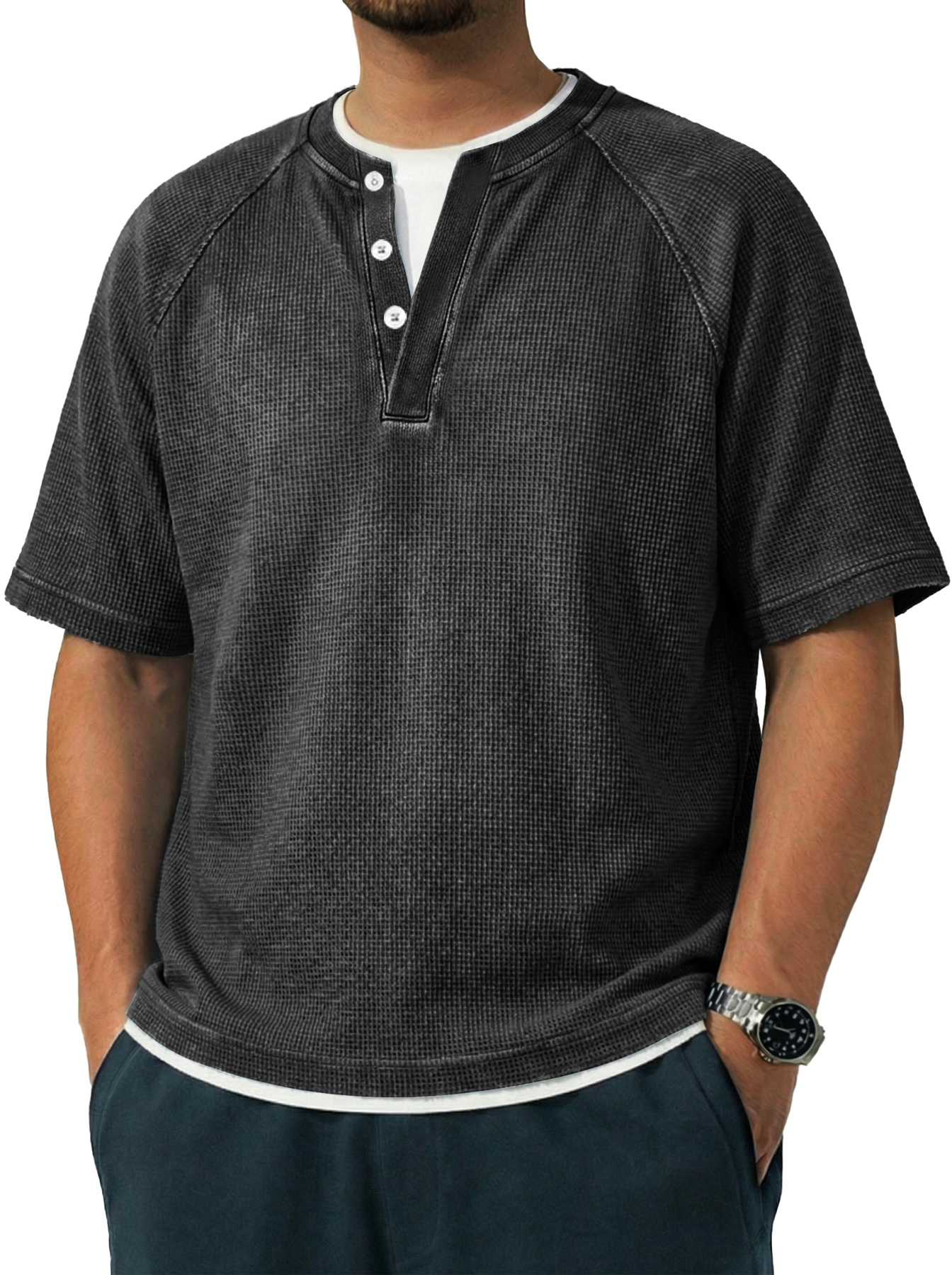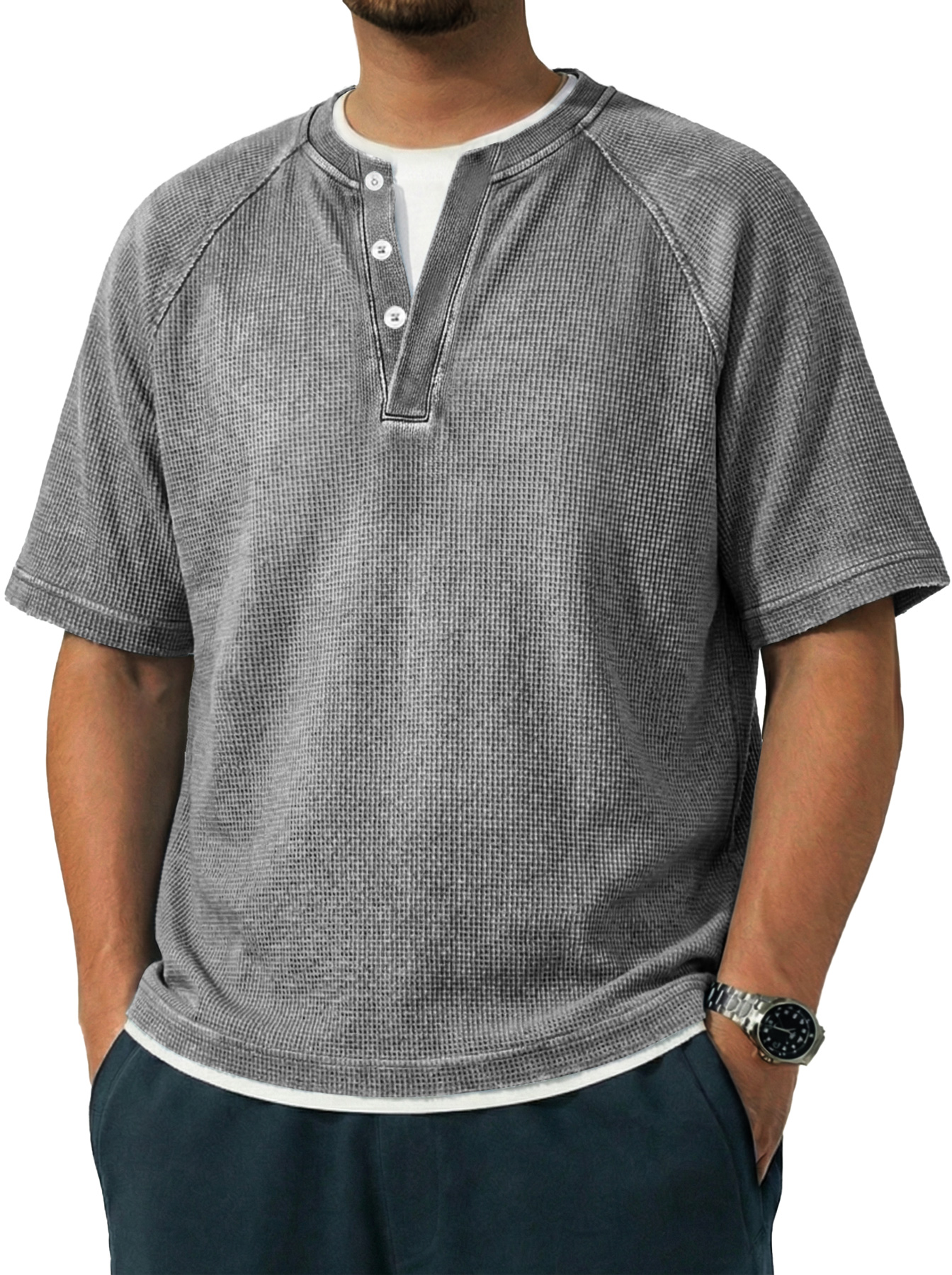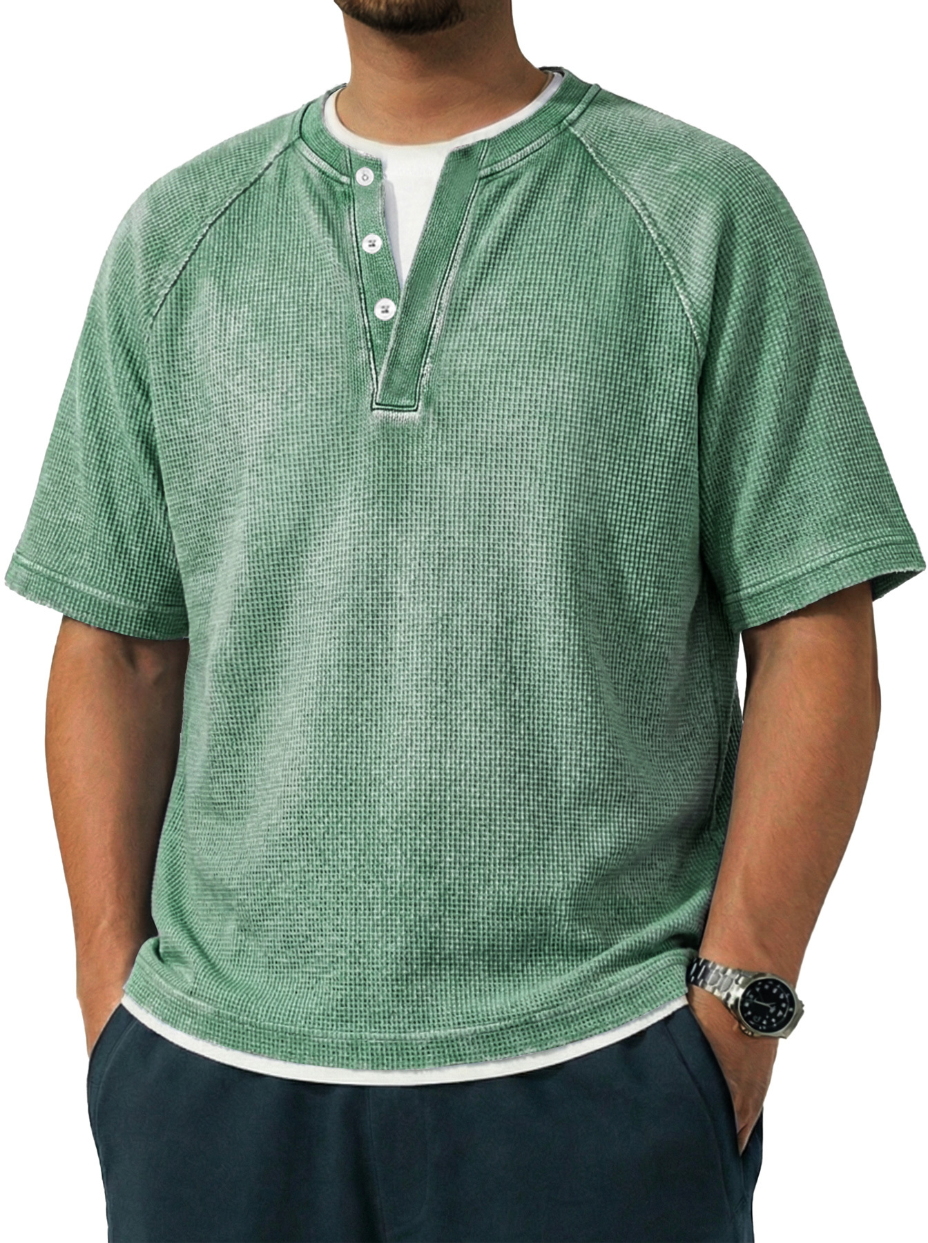 Men's Vintage Raglan Sleeve Pocket Casual Henley Shirt