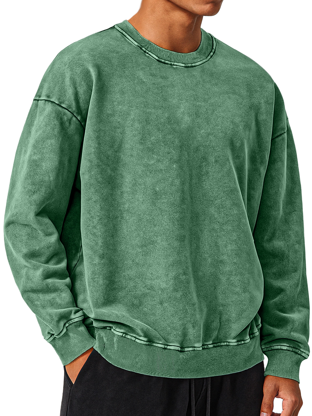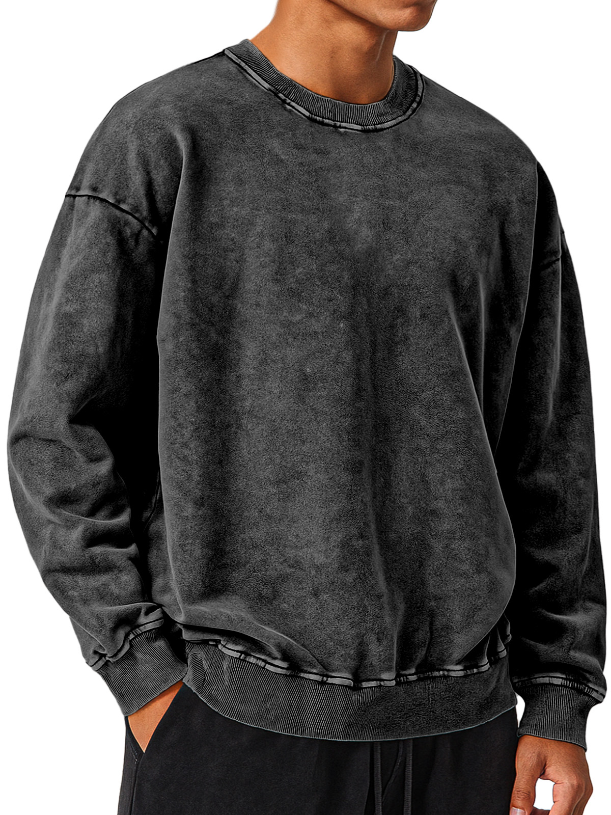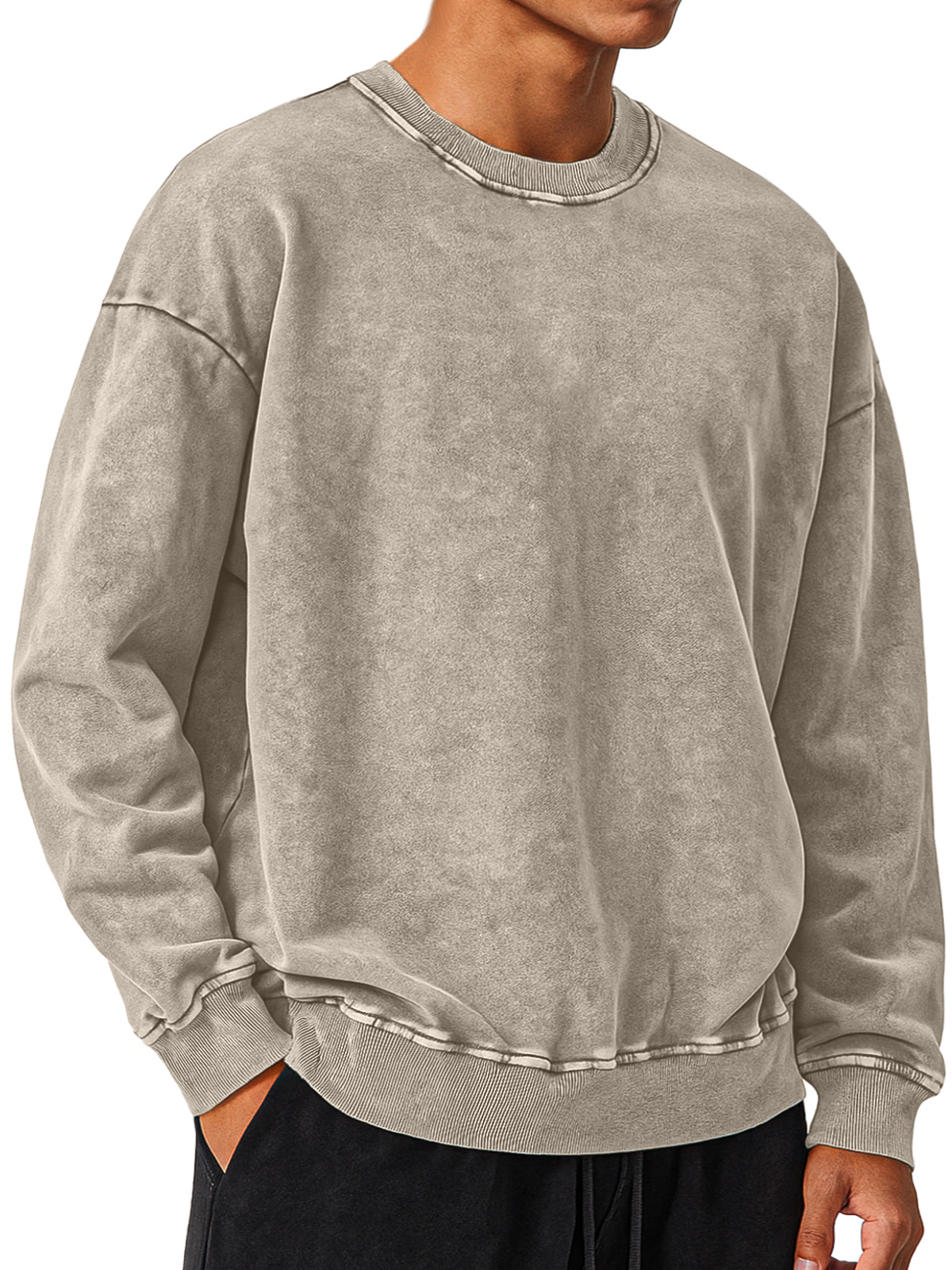 Men's Vintage Washed Cotton Round Neck Long-sleeved Sweatshirt