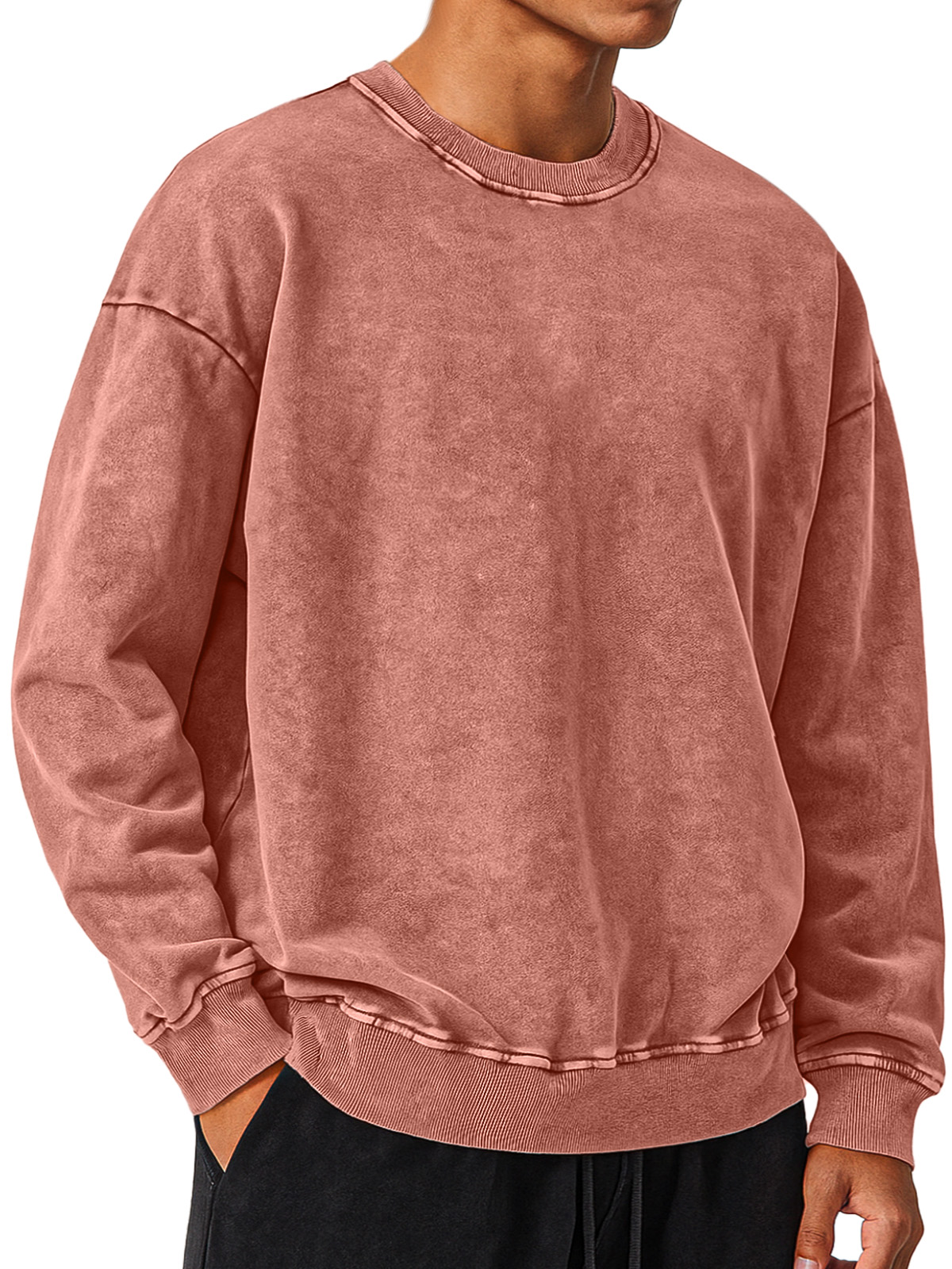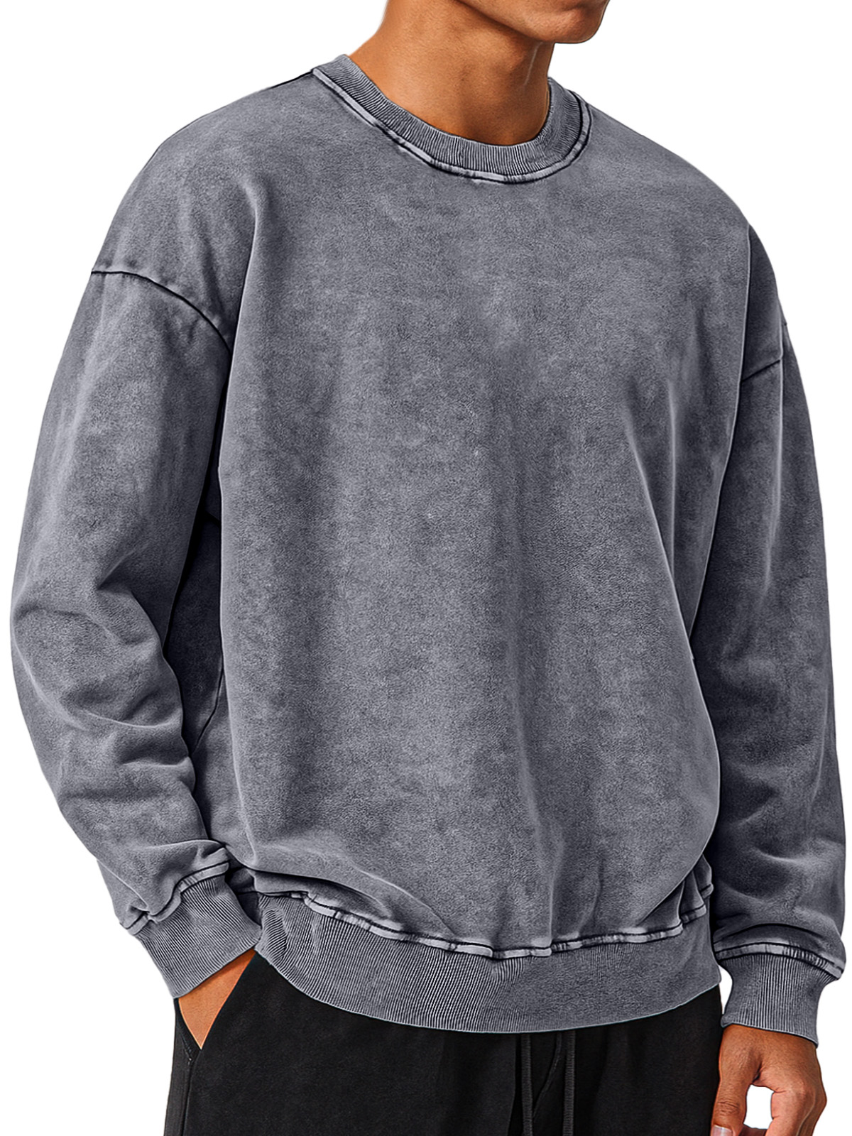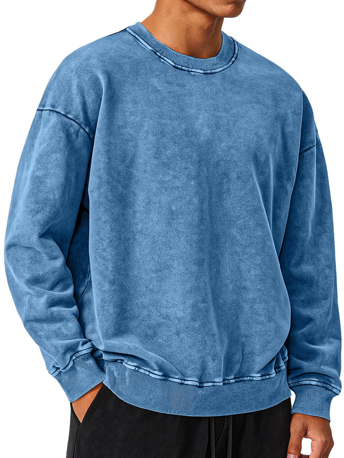 Men's Vintage Washed Cotton Round Neck Long-sleeved Sweatshirt