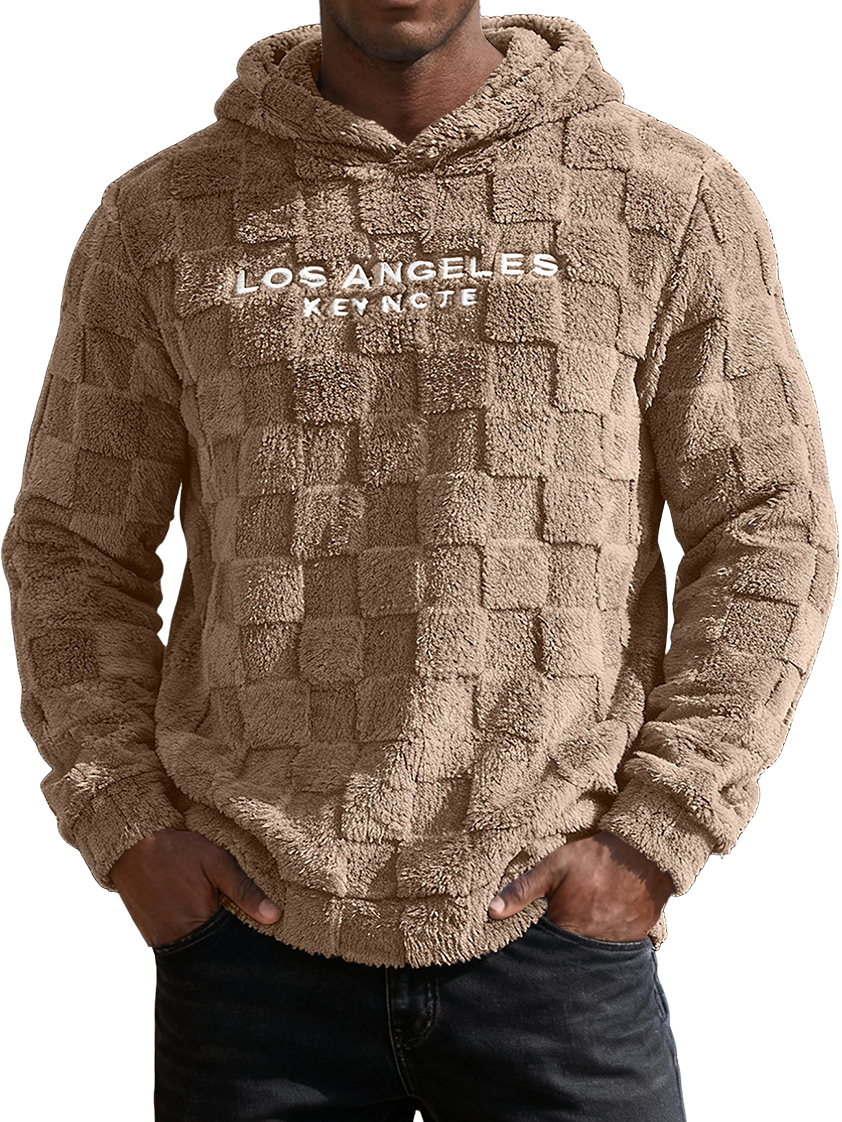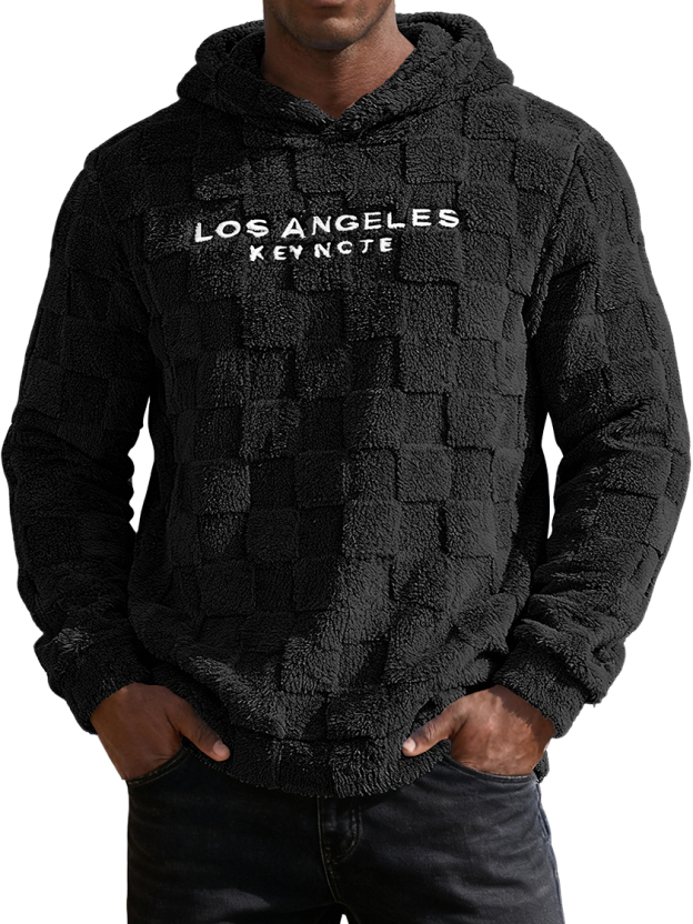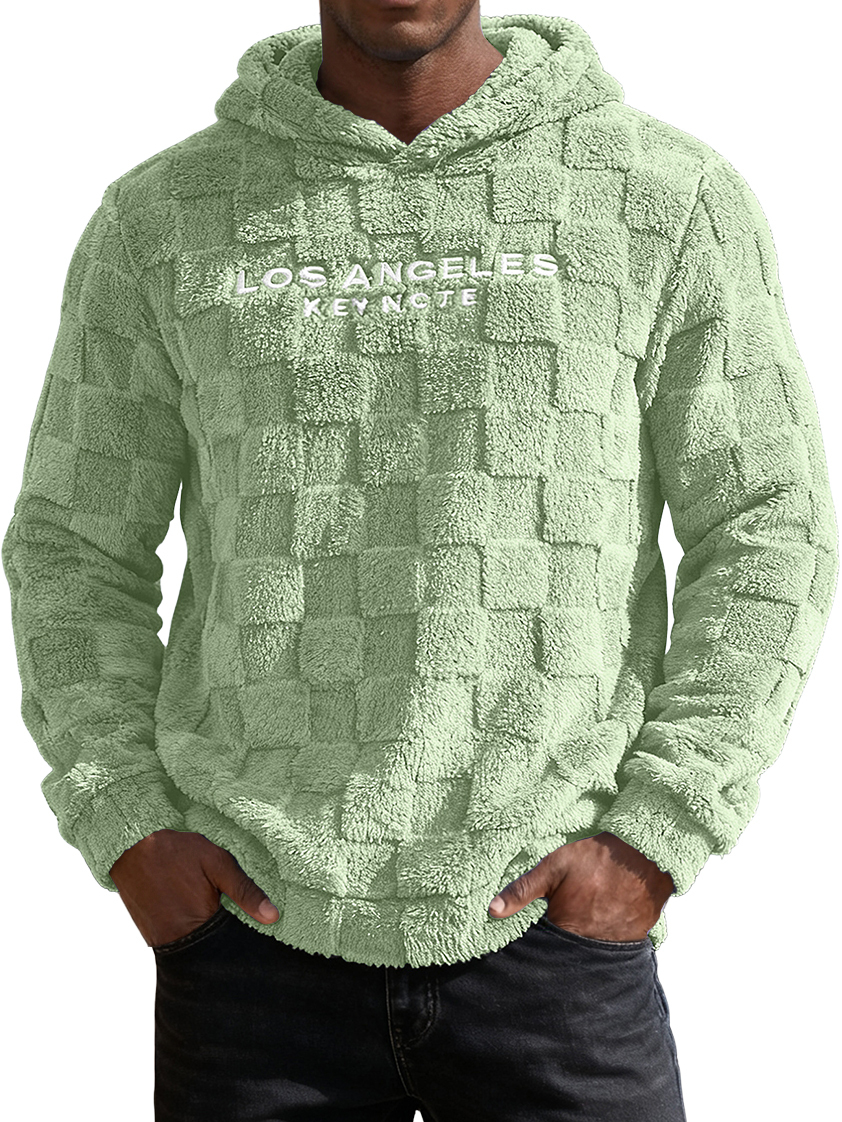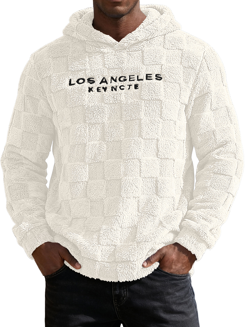 Men's Waffle Knit Fleece Letter Embroidery Hooded Sweatshirt