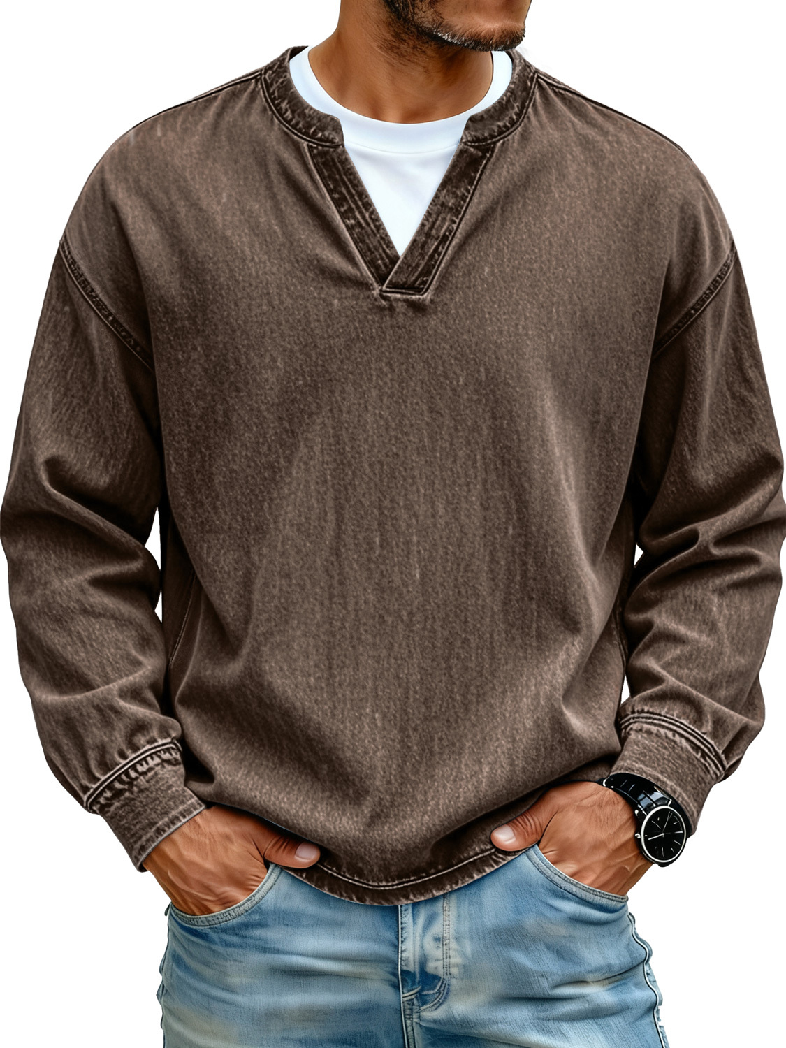 Retro Minimalist Faux Two-piece Design Casual Long-sleeved T-shirt